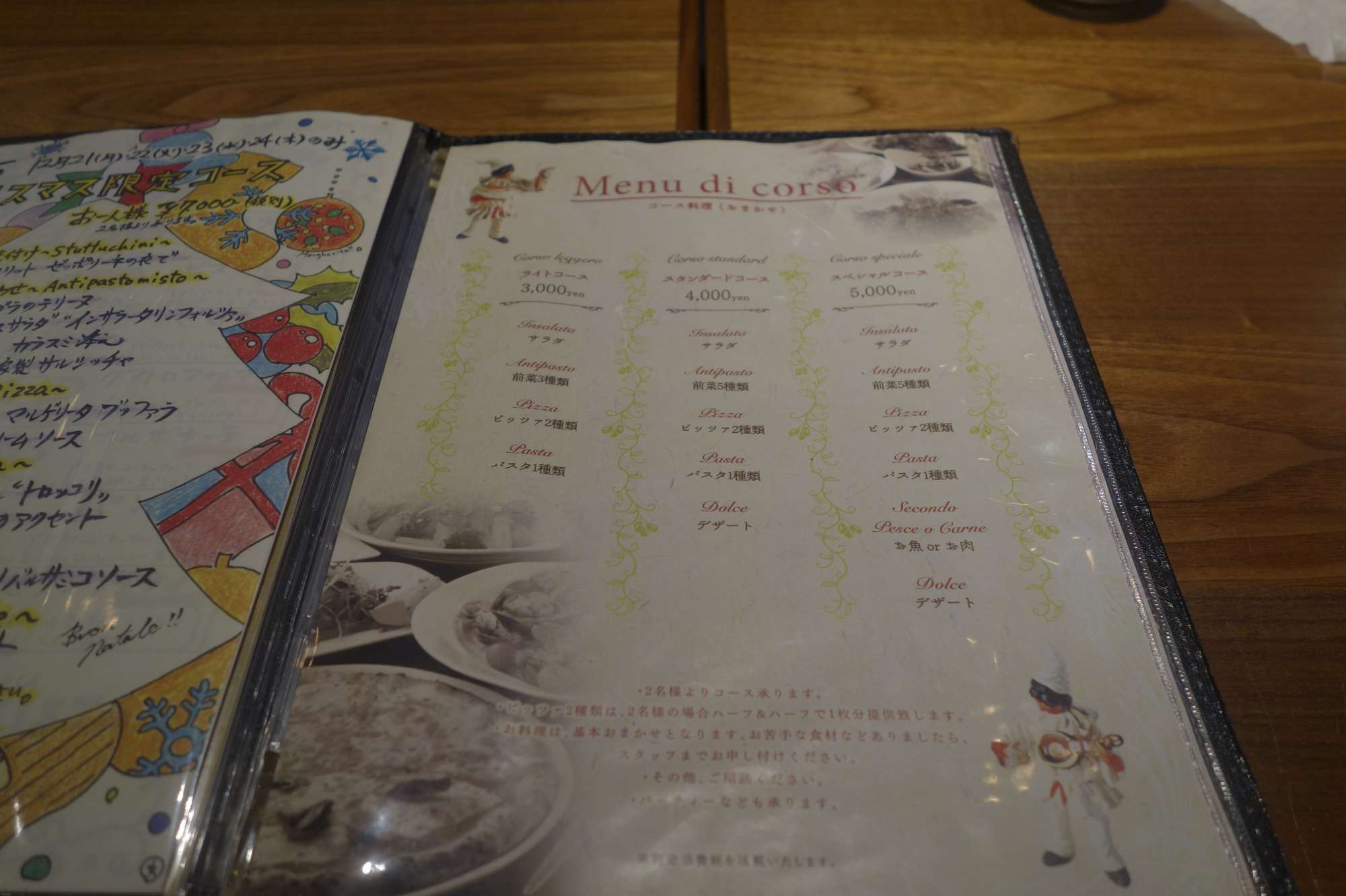 コースメニュー3種類。※3000円、4000円、5000円。