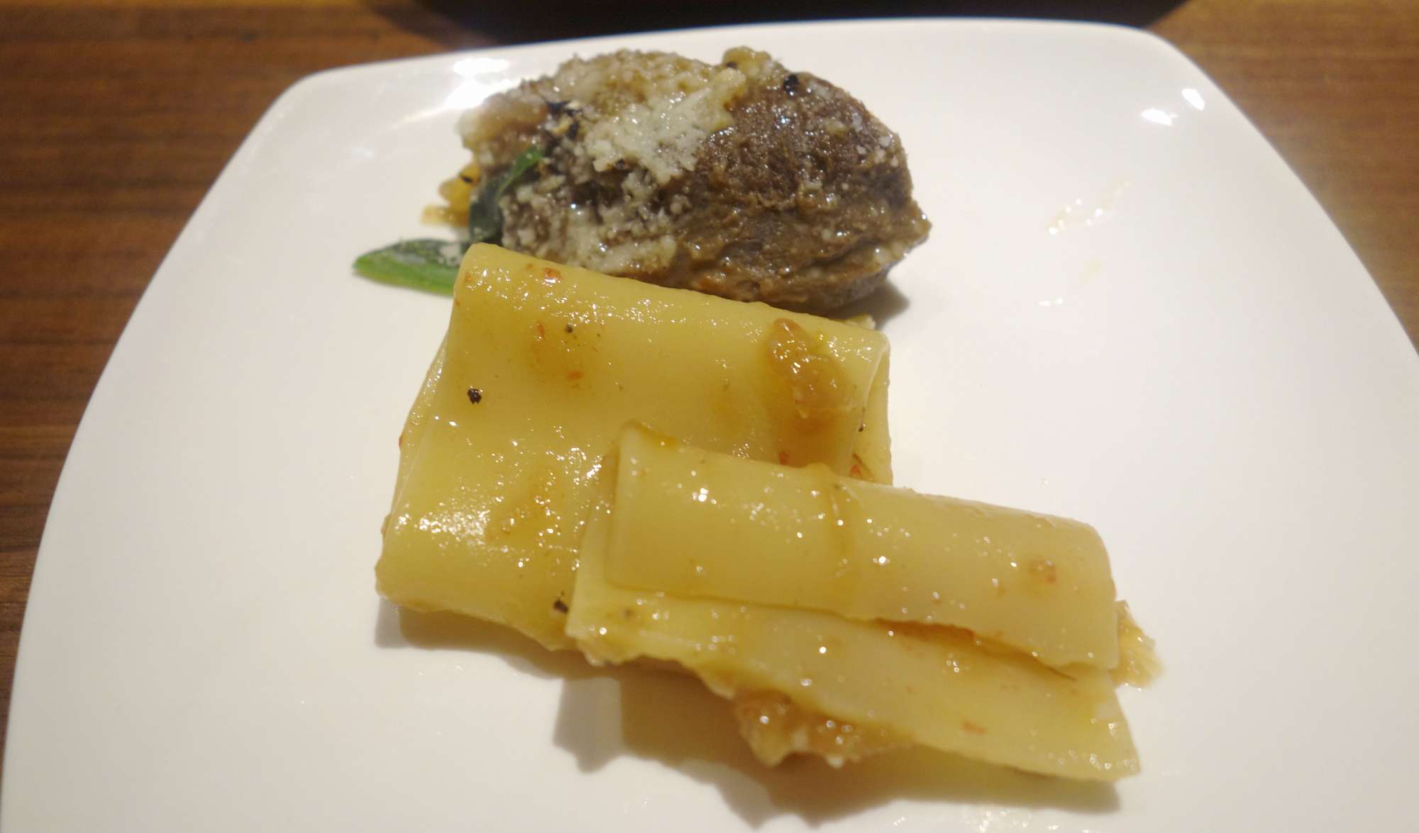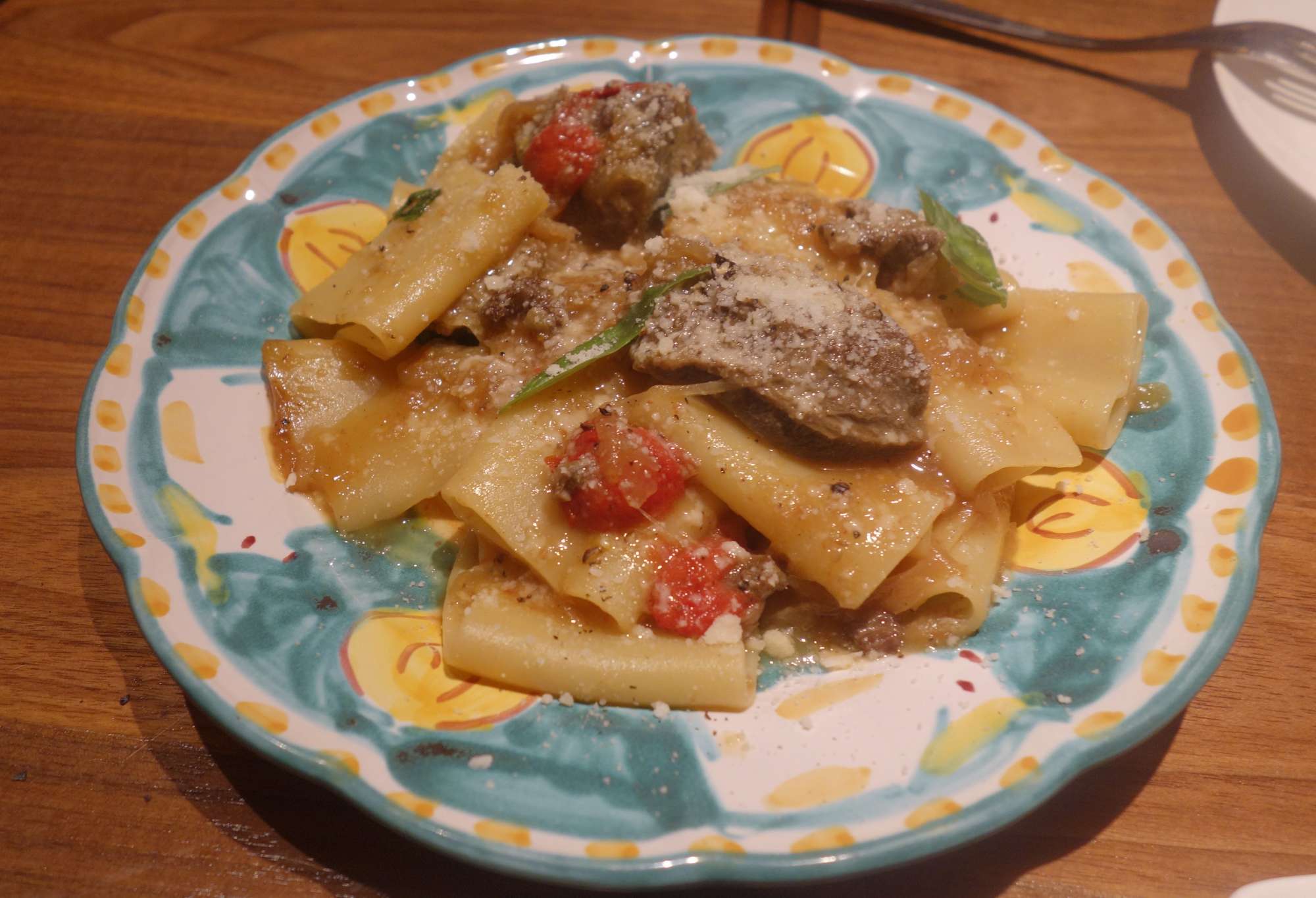太いパスタはしっかりコシがあって、後から仕込んであった玉ねぎの甘みも感じ、具に使われている大ぶりな牛肉はしっかりと煮こまれてやわらかな食感でした。