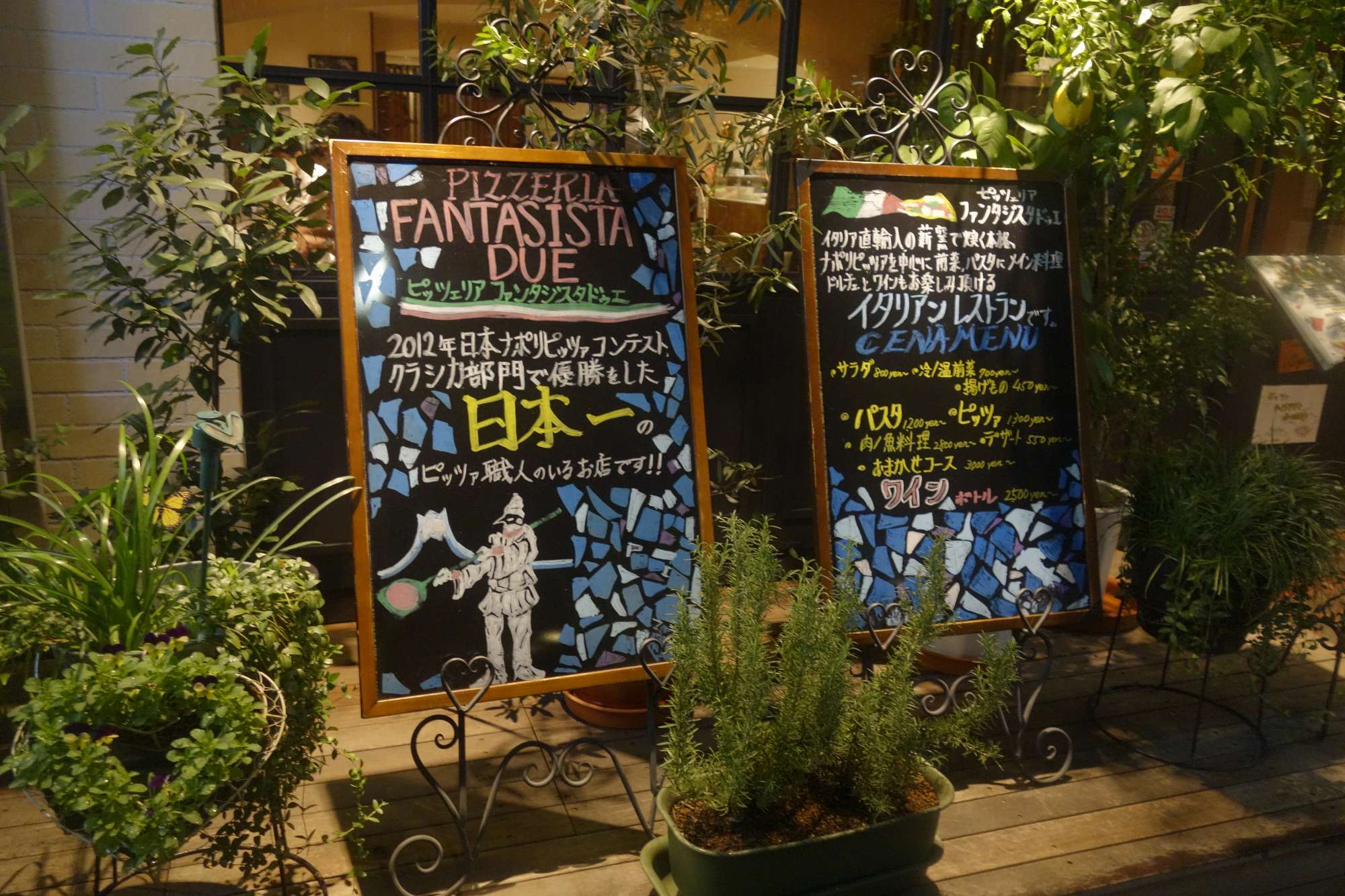 ピッツェリアファンタジスタドゥエは、2012年に日本ナポリピッツァコンテストクラシカ部門で優勝した日本一のピッツァイオーロが居るとのことで、味に期待をしながら店内へと進みます。