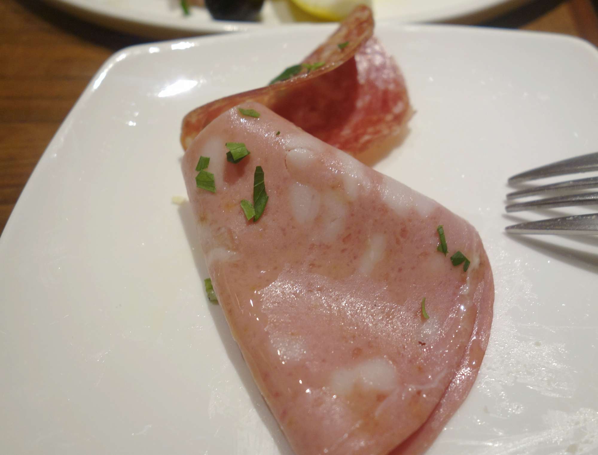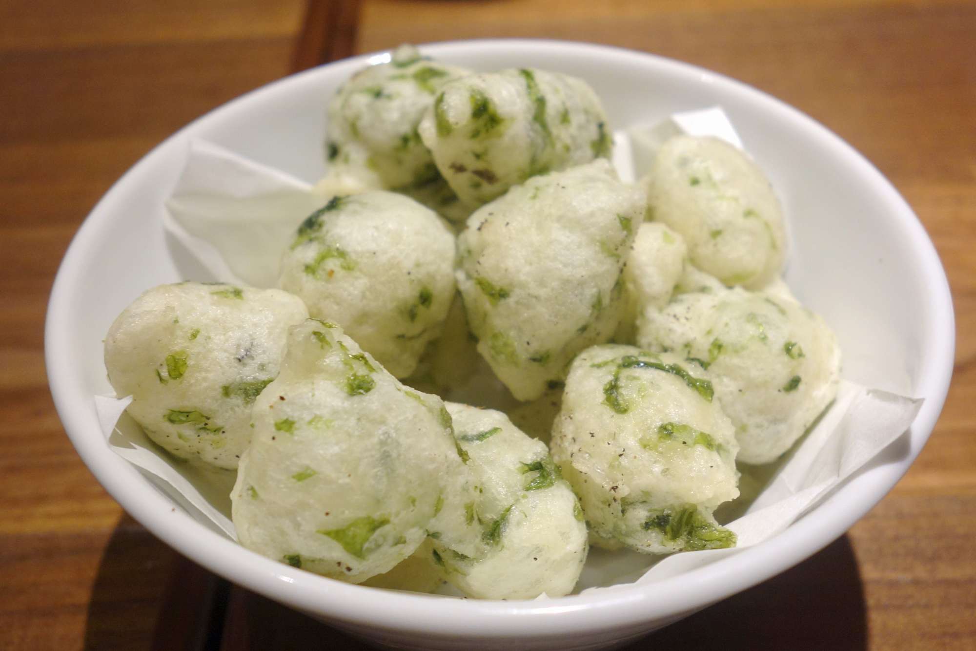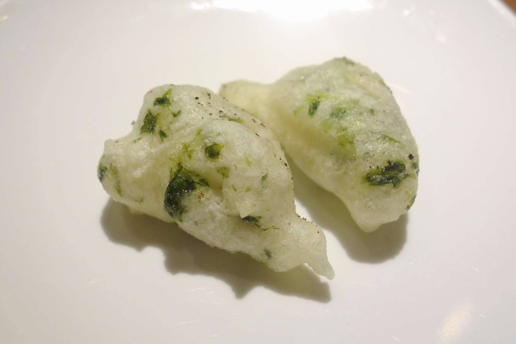 ゼッポリーネはピッツァ生地に青のりを混ぜて揚げた料理ですが、青海苔の香りと程よく塩味を感じるもちもち食感な一品で、ピッツァ生地の味わいにも期待が持てます。