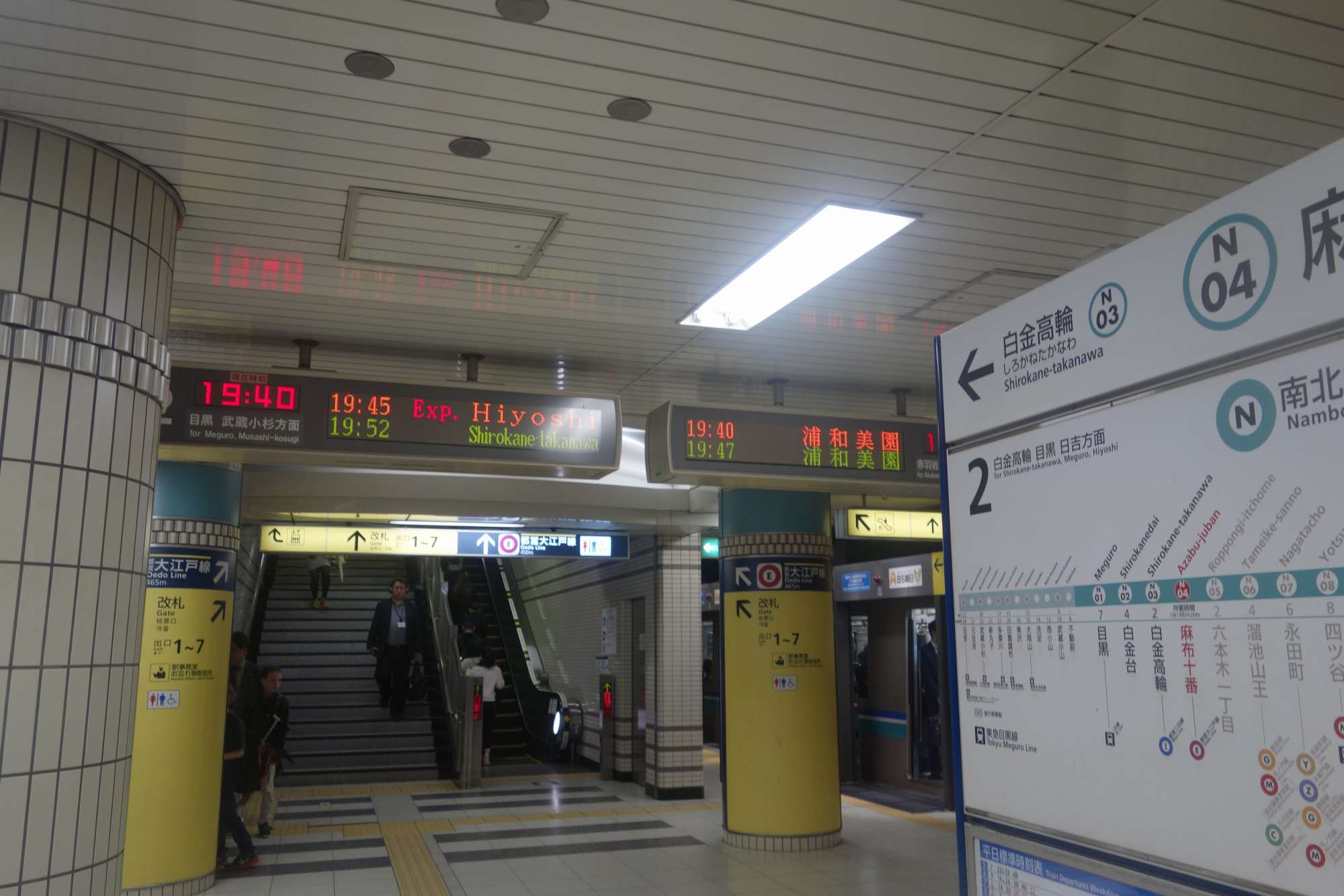 何度も何度も電車を乗り降りした南北線ホームよりエスカレーターでまずは改札階へと移動。
