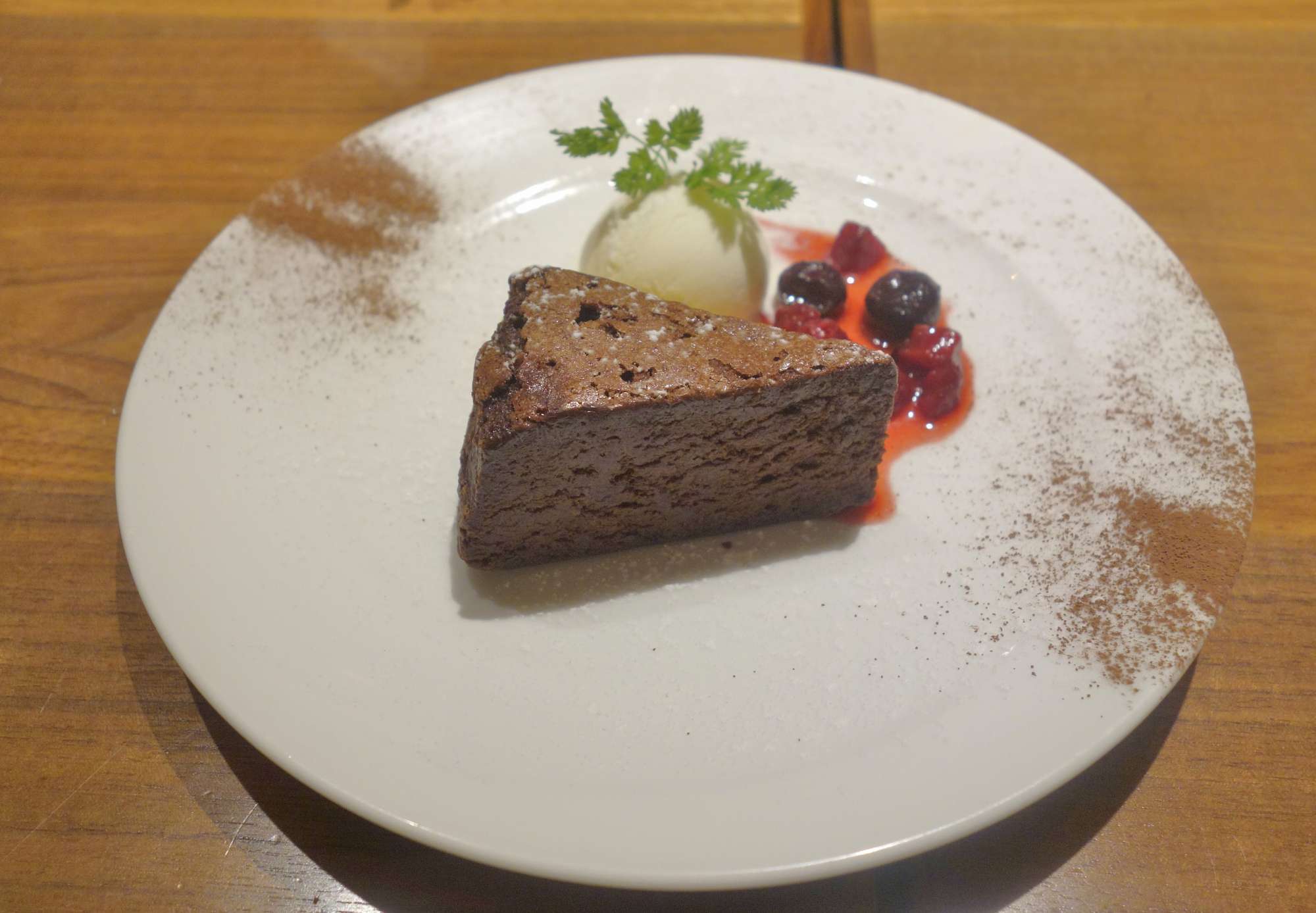 小麦粉が使われていないらしく、チョコレートの味わいが濃厚な、濃厚なチョコレートケーキミルクのアイスクリーム添え650円をぺろりと完食し、食事が終了しました。