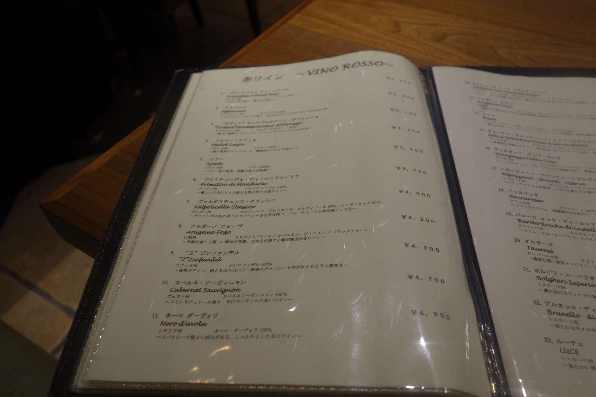 赤ワインボトルメニューでドリンクメニューは以上です。
