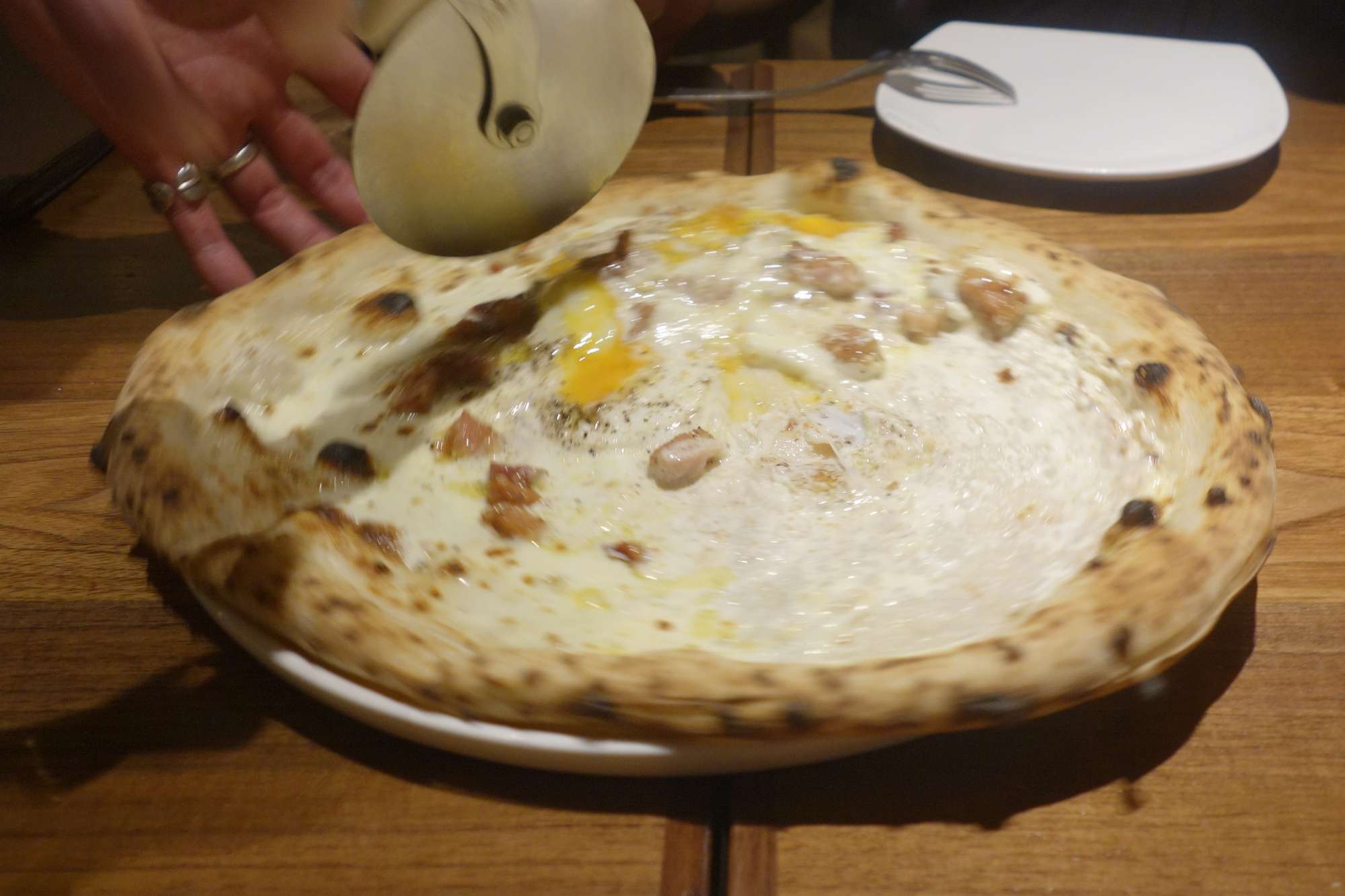 その後はお店一推しらしいカルボナーラピッツァ1780円を注文。