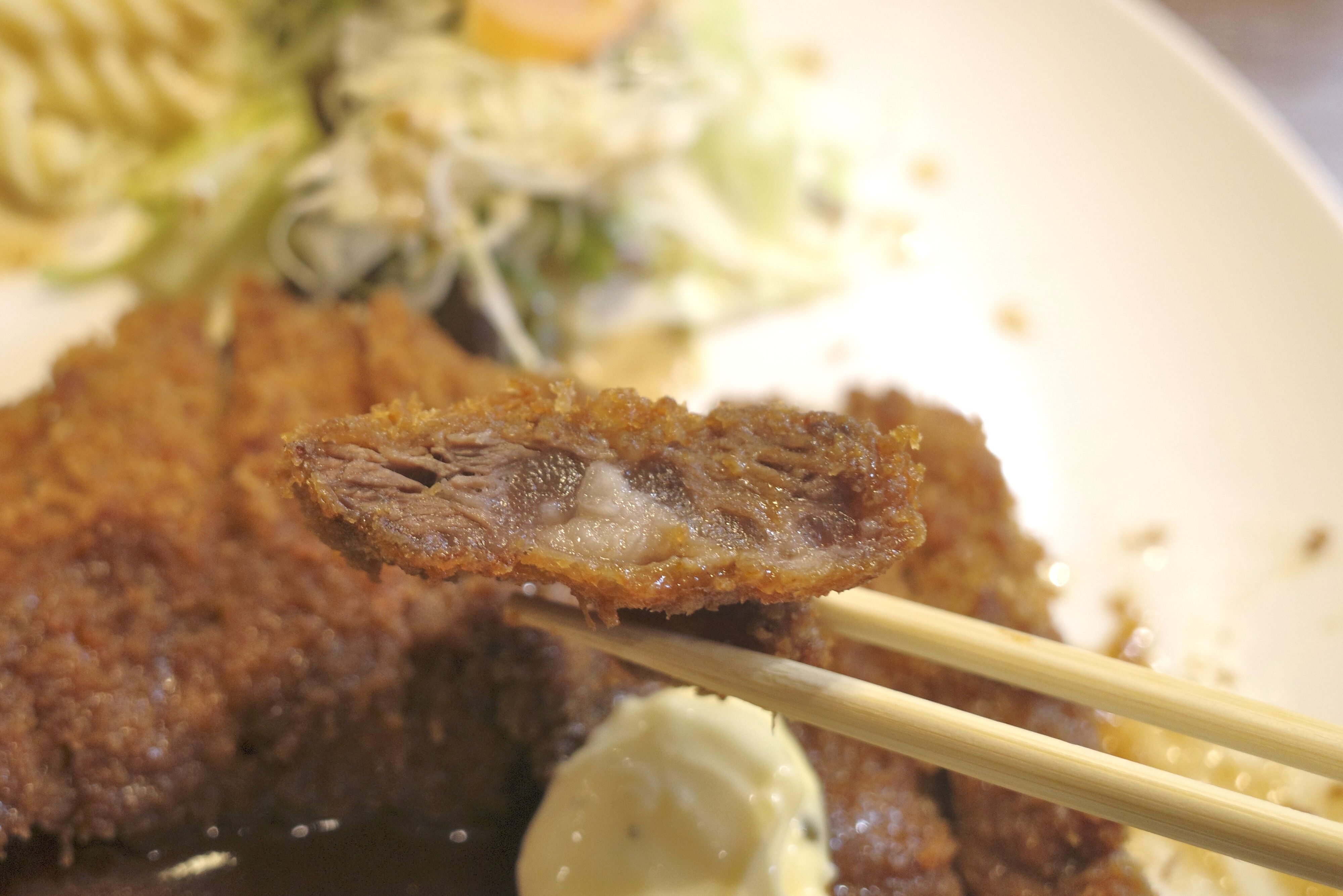 ちなみに主役の「ビーフカツ」はビッグサイズかつ、サラダが添えられているのがグー!それではいただきます!