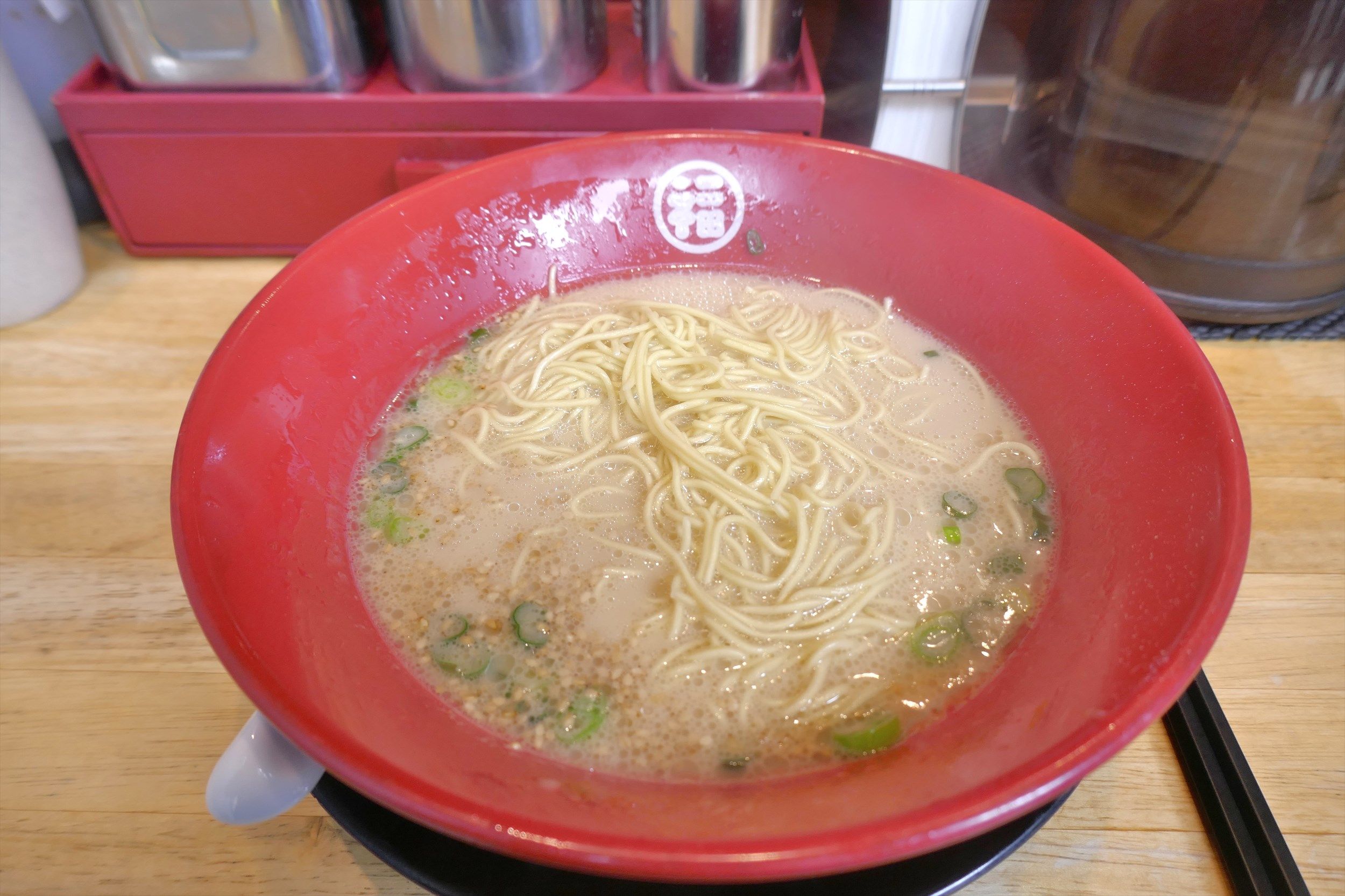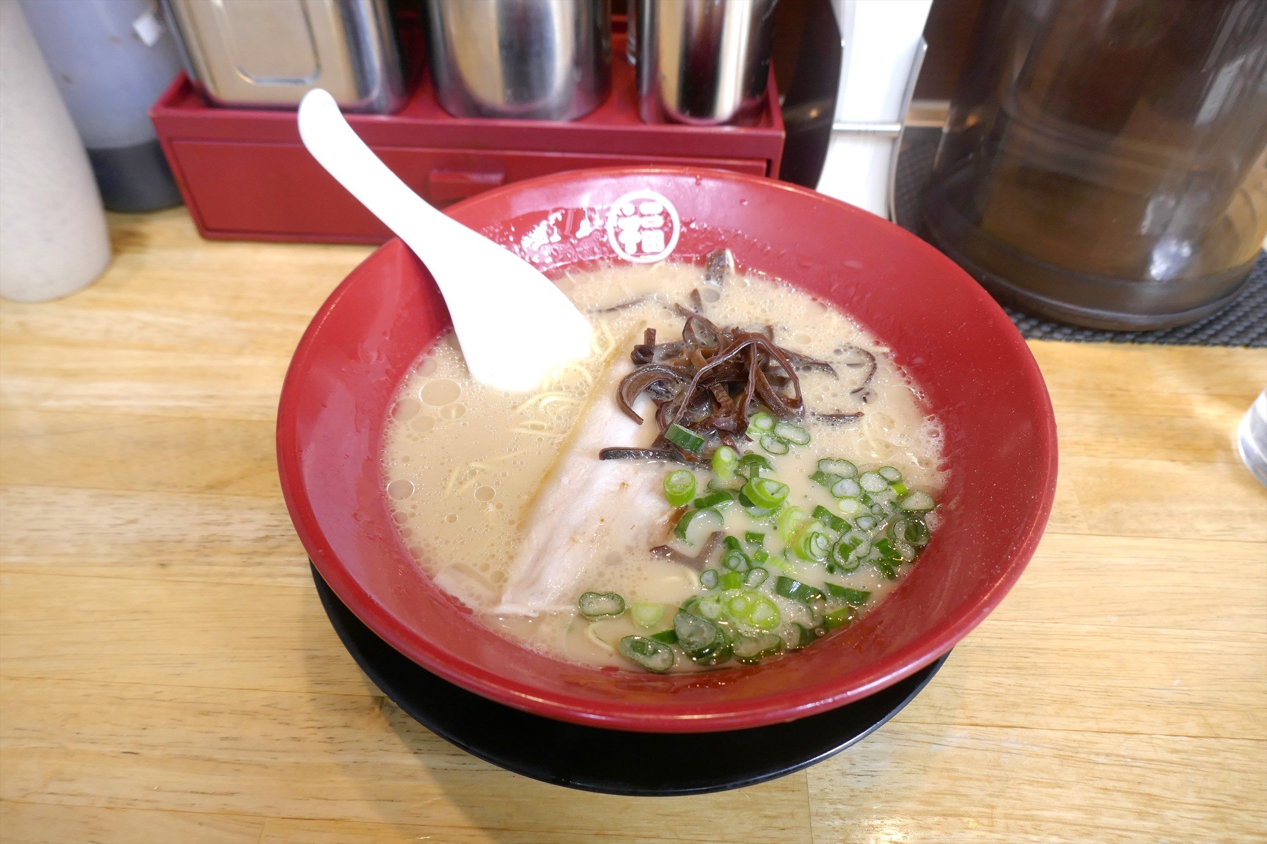 と、言うことで、久々に「福の軒」へ。今回は「とんこつラーメン」480円を注文。麺は固めをチョイスしました。