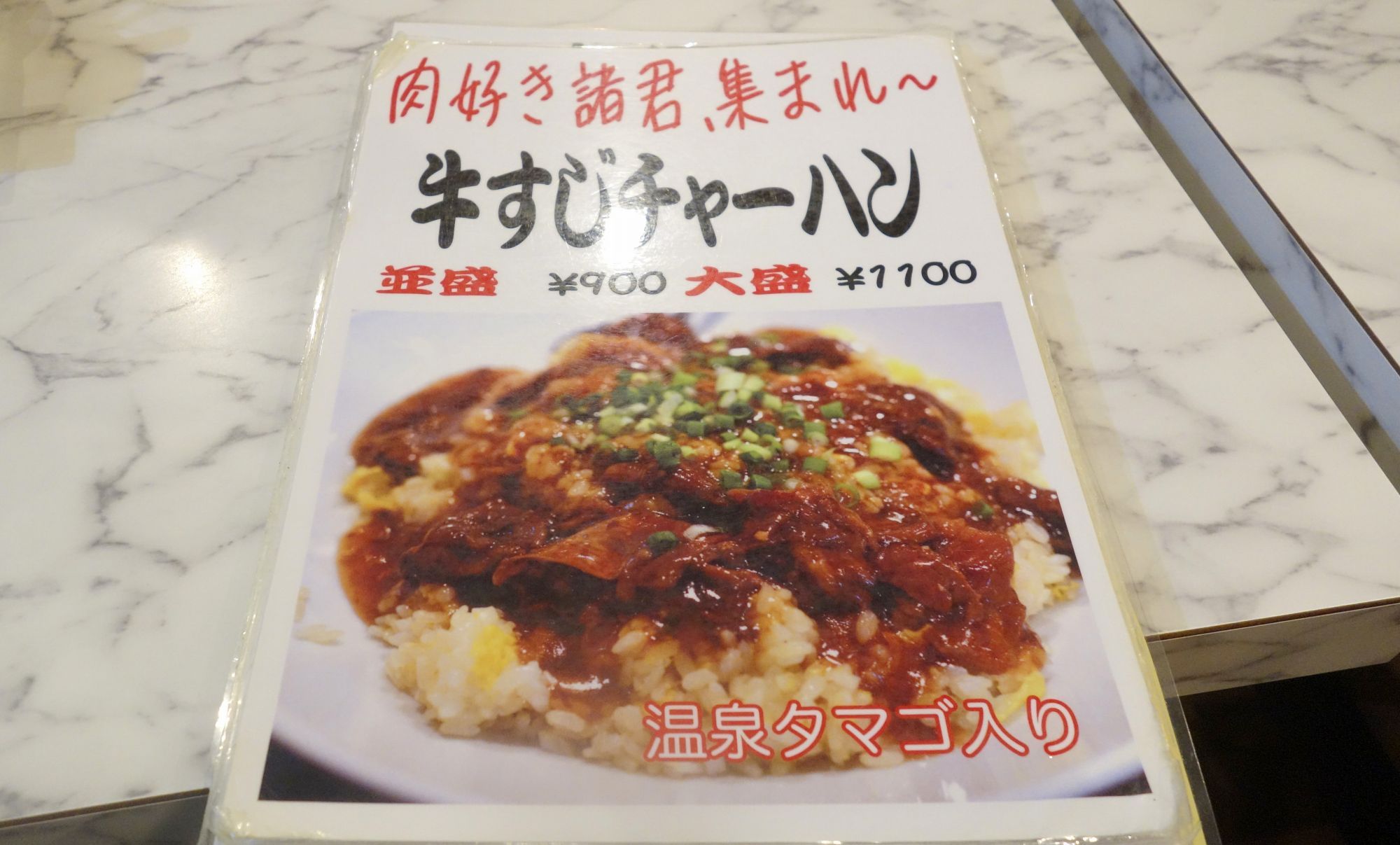 今回は人気の牛すじチャーハン大盛1100円を食べてみることにしました。