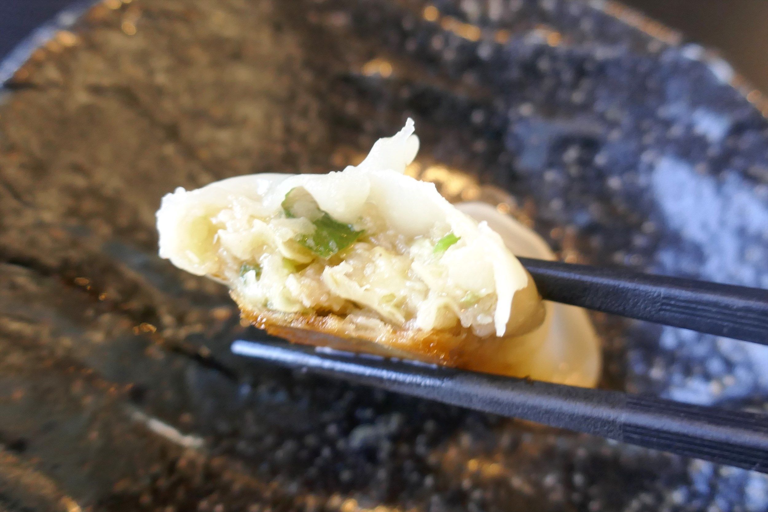 浜松餃子はゴマ油の風味が効いていて焼面パリパリ!