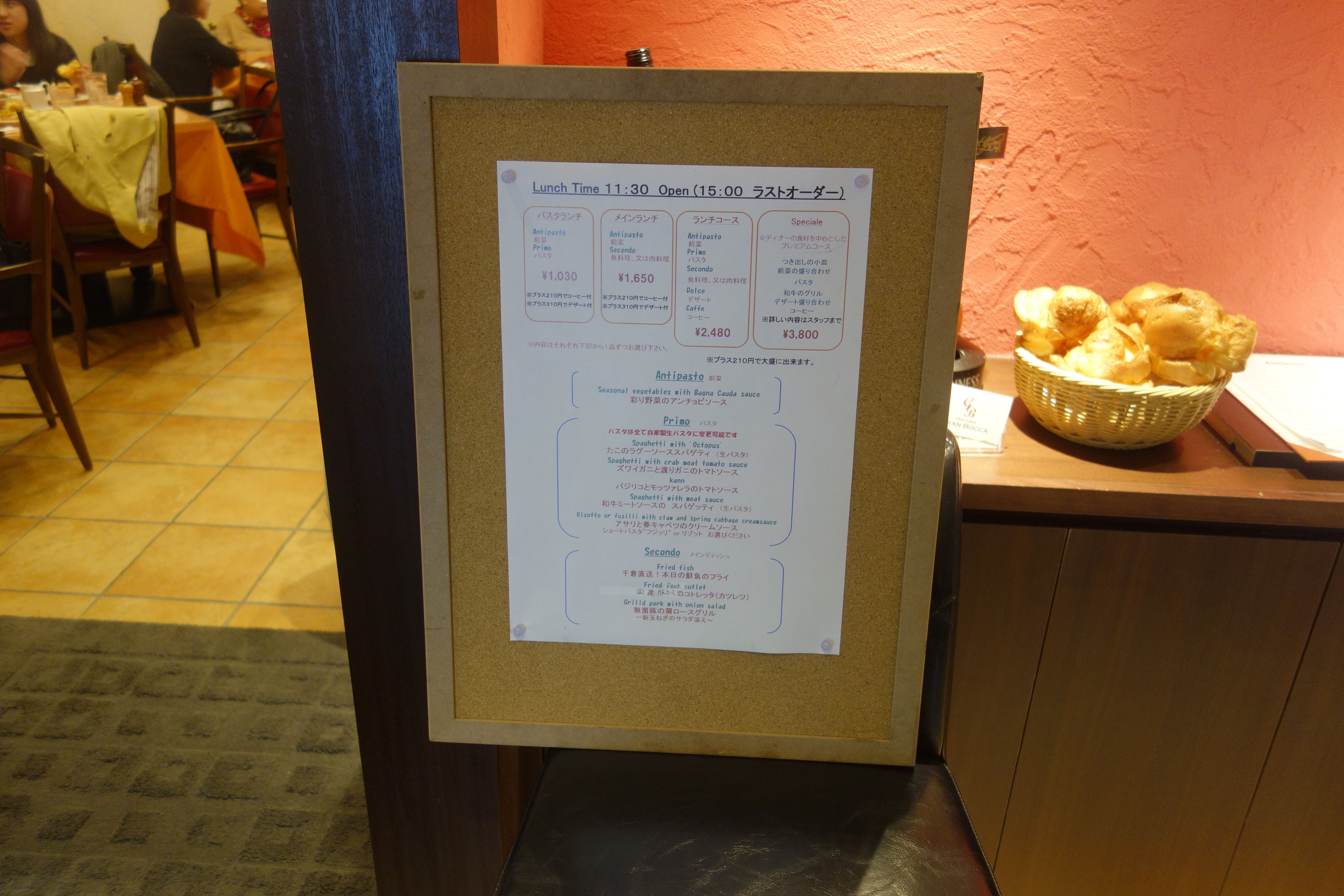 ランチメニューの内容は前菜、パスタ。価格によってはメインディッシュもついている模様。