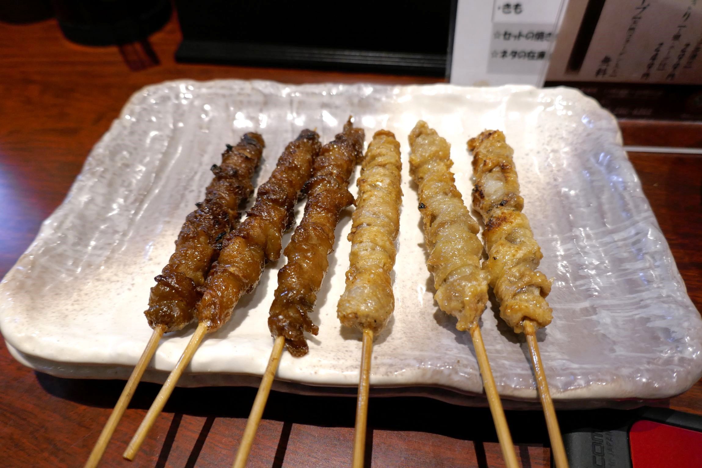 その後、博多とりかわタレ109円、博多とりかわ塩109円を各3本ずつ注文しました。