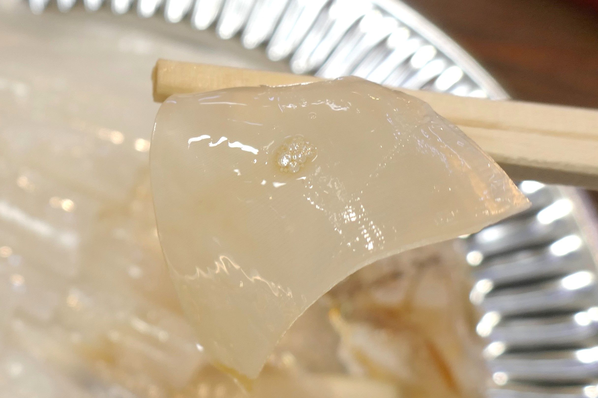 エンペラの部分は固めな食感かつ、噛みしめるたびにハリを感じる一品。
