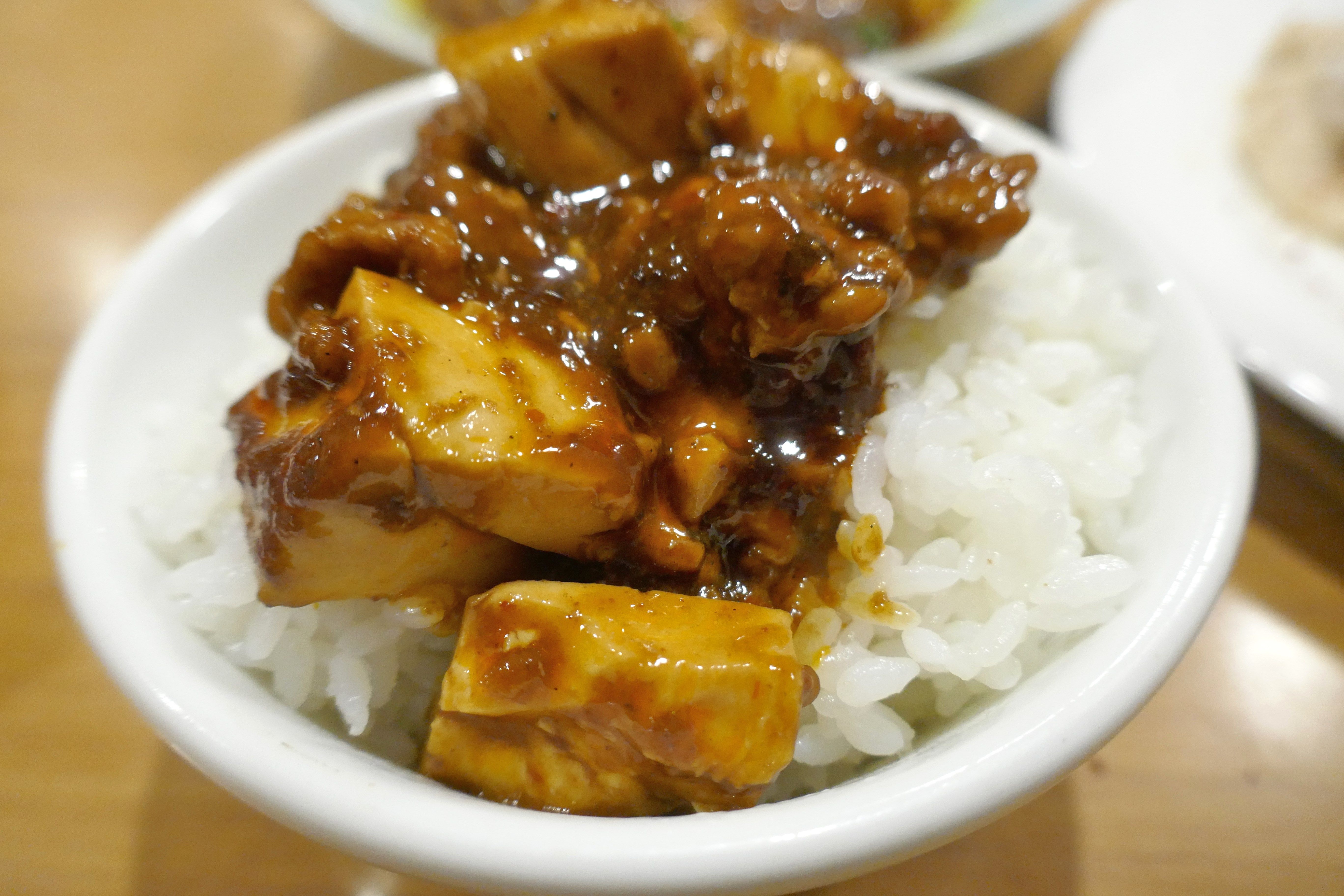 素のまま食べた時は思わず咳き込んでしまうくらいに唐辛子の辛さが強烈だった「羊肉入り麻婆豆腐」は、ハリのあるご飯を介することで唐辛子の刺激が収まったことで、辛さに隠れていたウマさが引き出されてメチャウマ!本気でハマるウマさの麻婆豆腐でした!