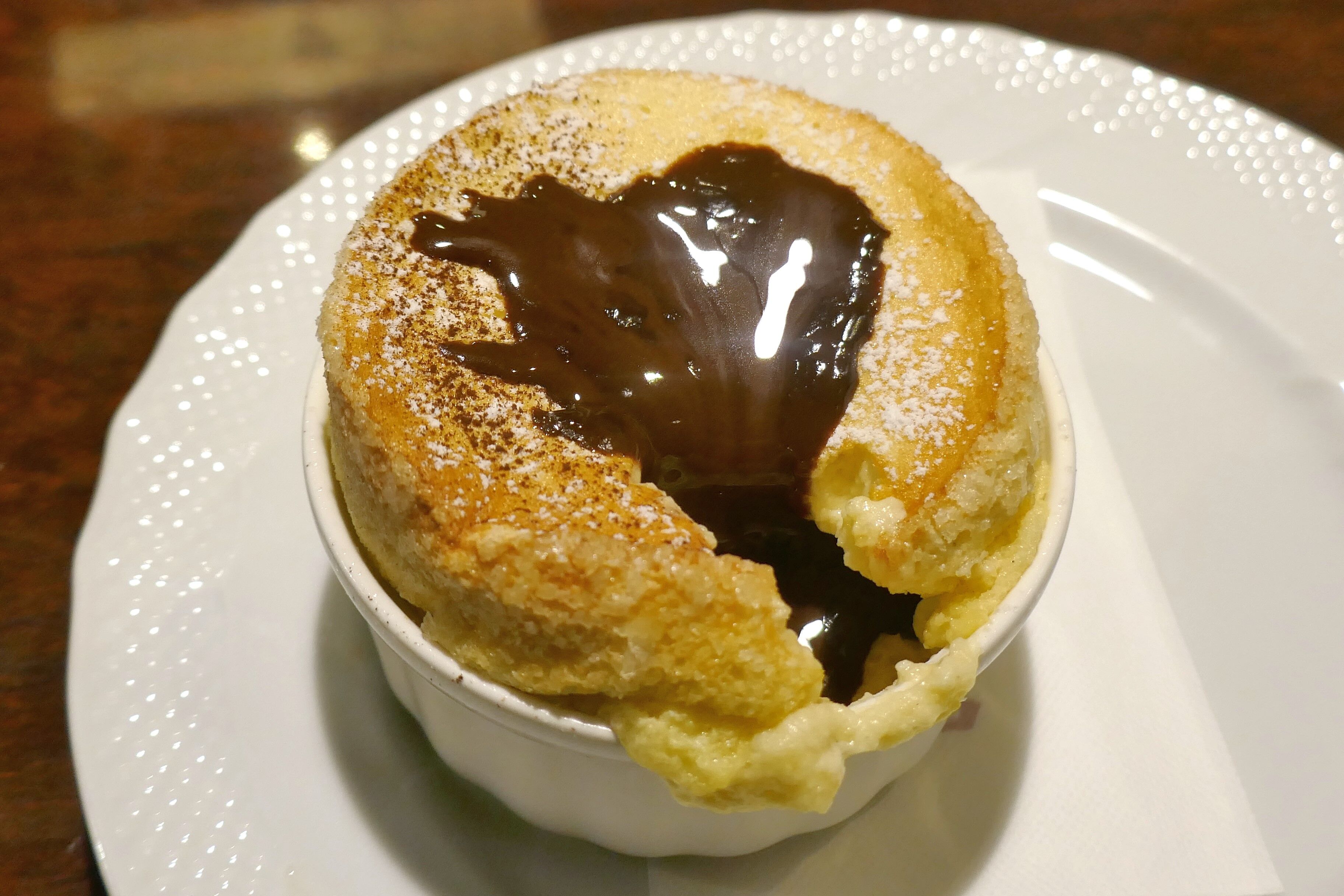 注文してから20分ほど経った頃に「窯焼きスフレ(生チョコレートソース)」500円が登場!