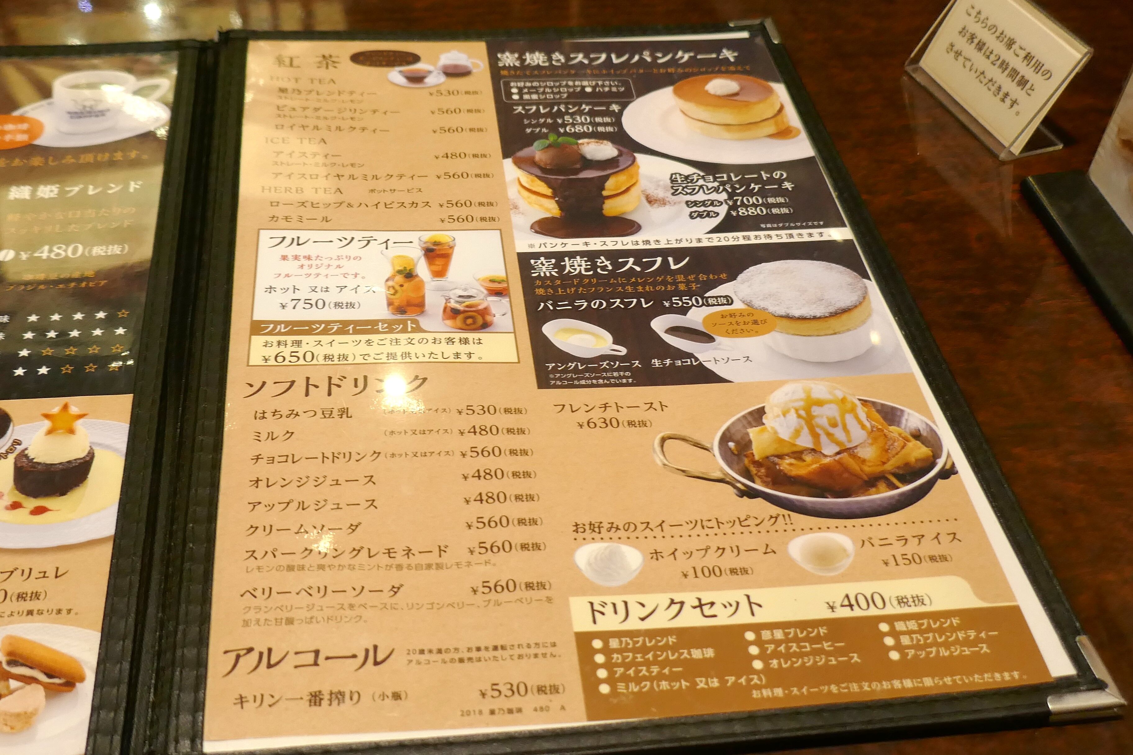 星乃珈琲店のこだわりを記したページにてメニューは以上となります!