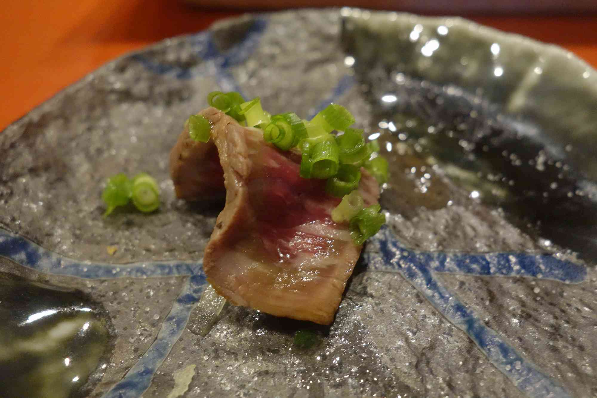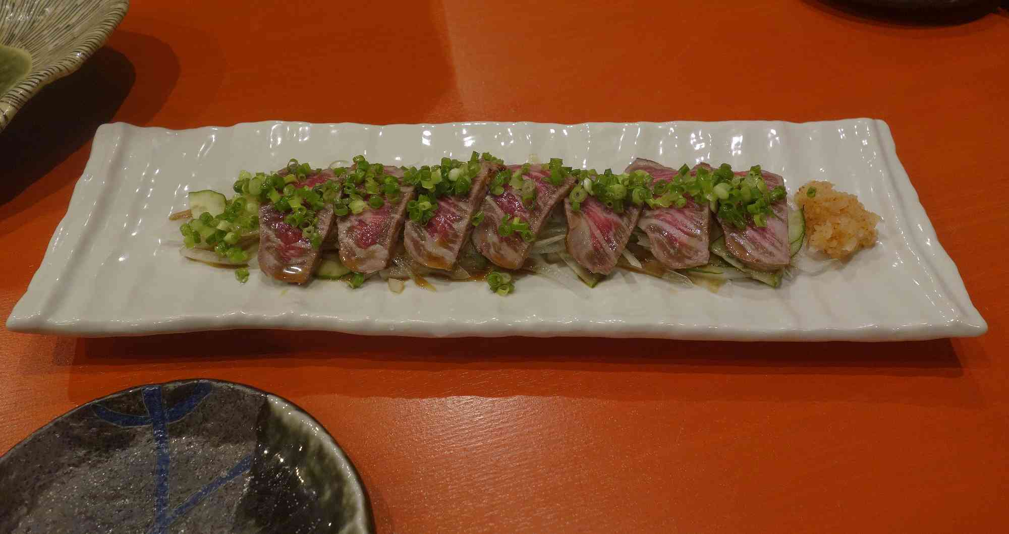 貝の後は違う旨味の食材を食べたいと言うことで、イチボ肉のたたきポン酢1200円を注文し