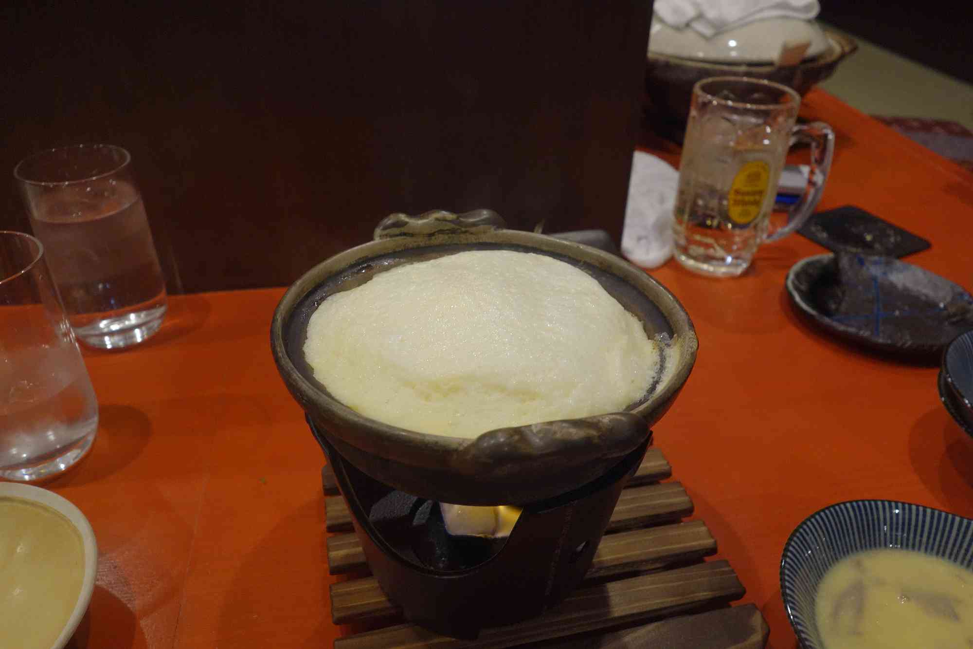 次はホタテだし焼きたまご790円を注文すると、だし焼きたまごなのに何故か鍋が用いられ