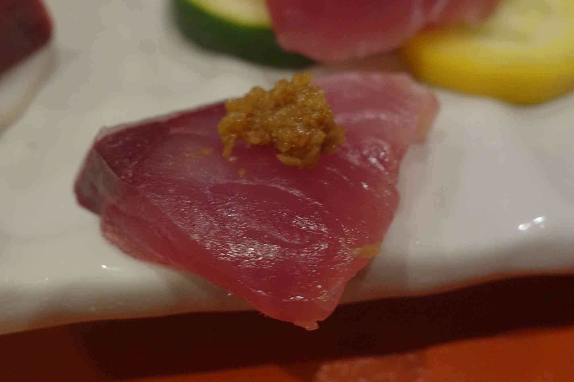 その後はハチビキという名前の赤身なのに白身の味わいな魚のお造り1250円を注文し