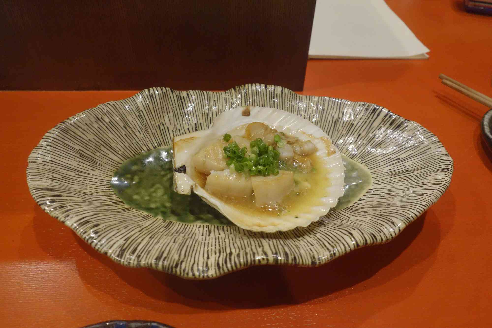 ホタテの殻焼きが目の前にサクッと配膳され