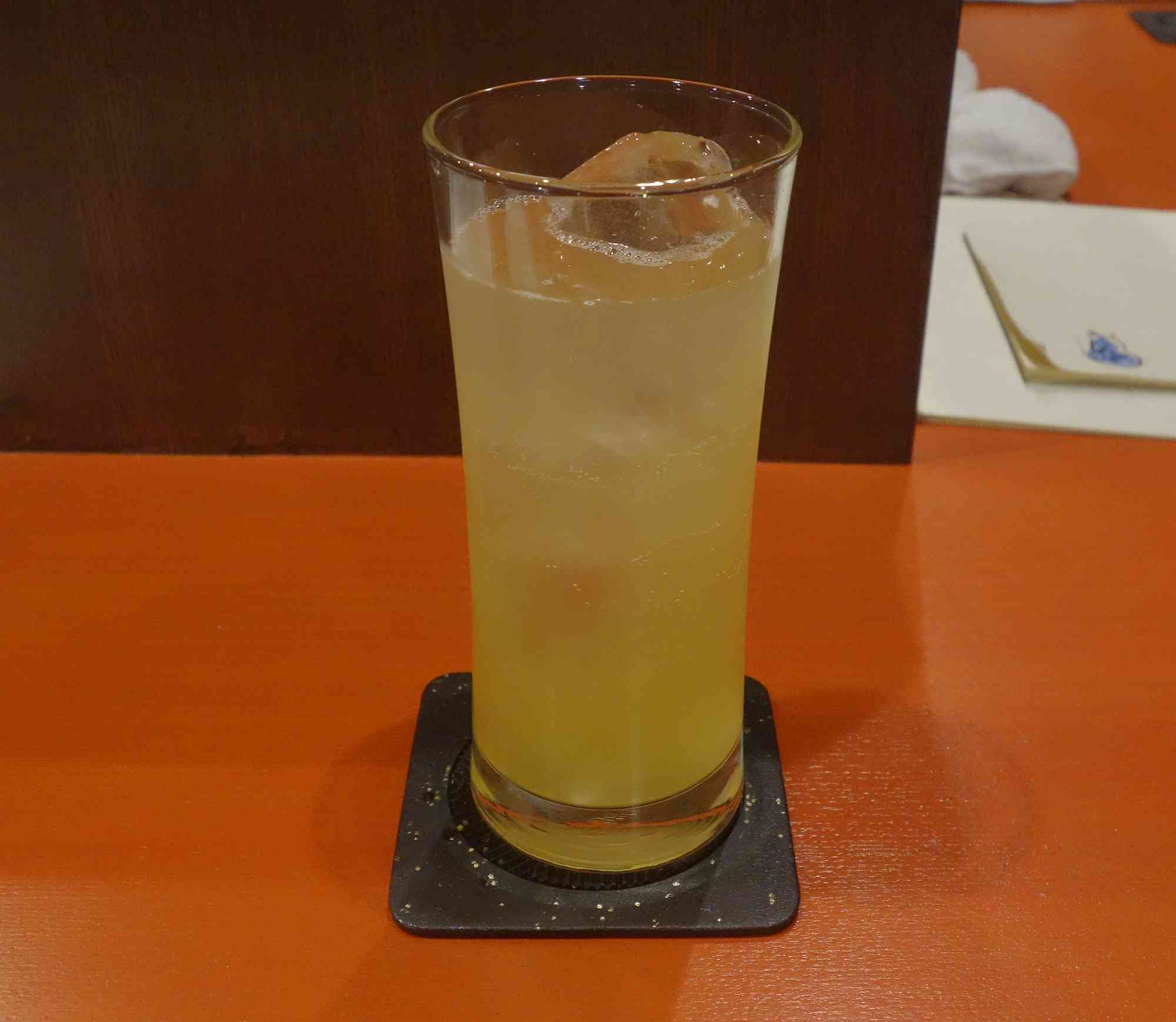 屋久島たんかん梅酒550円ソーダ割りをごくりと飲み干し