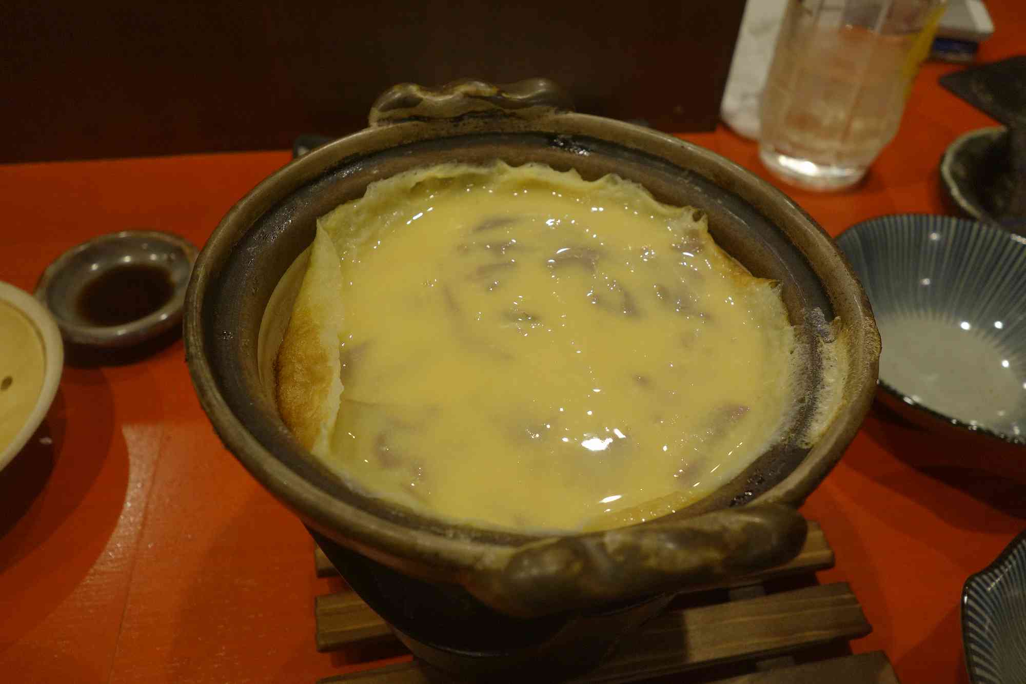 ホタテの出汁が効いた鍋焼き卵的な味わいの卵料理はしっかり熱々で旨味があって美味しく