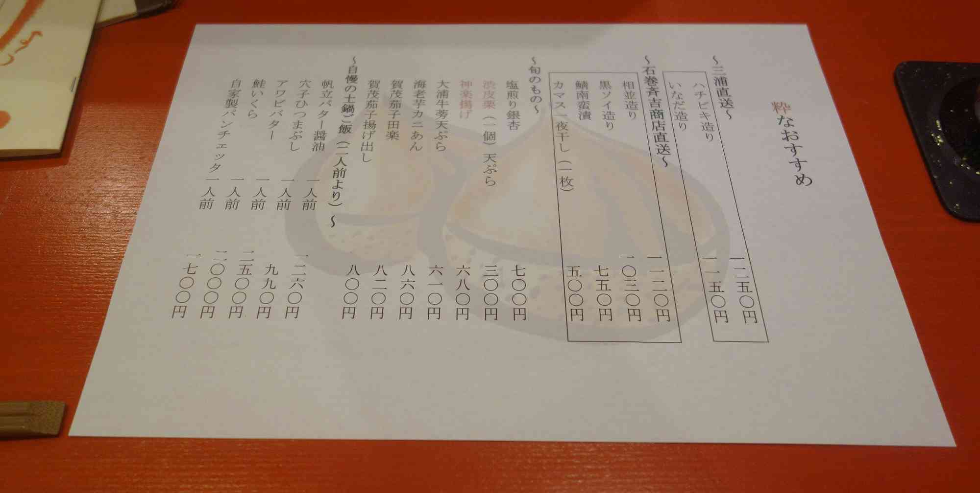 ※一番安価な神楽坂コースは3800円と神楽坂の割烹としては安価です。