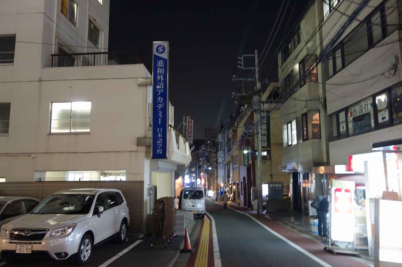 ツタヤを過ぎた曲がり角を左手へと曲がった後は進和外語アカデミーや