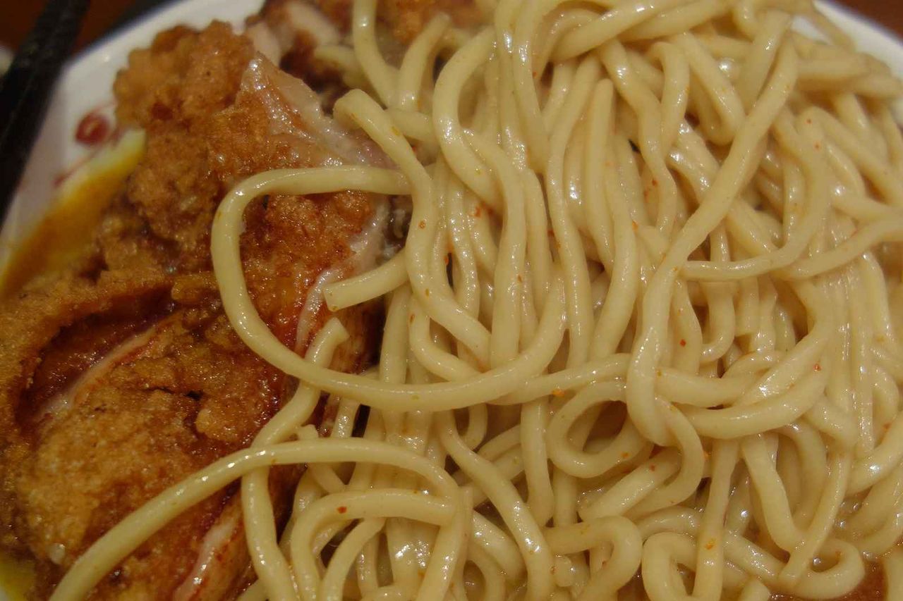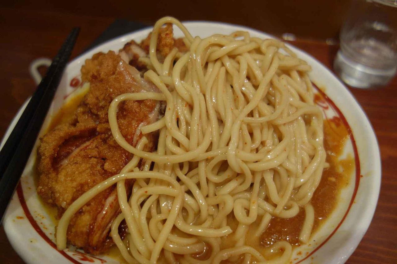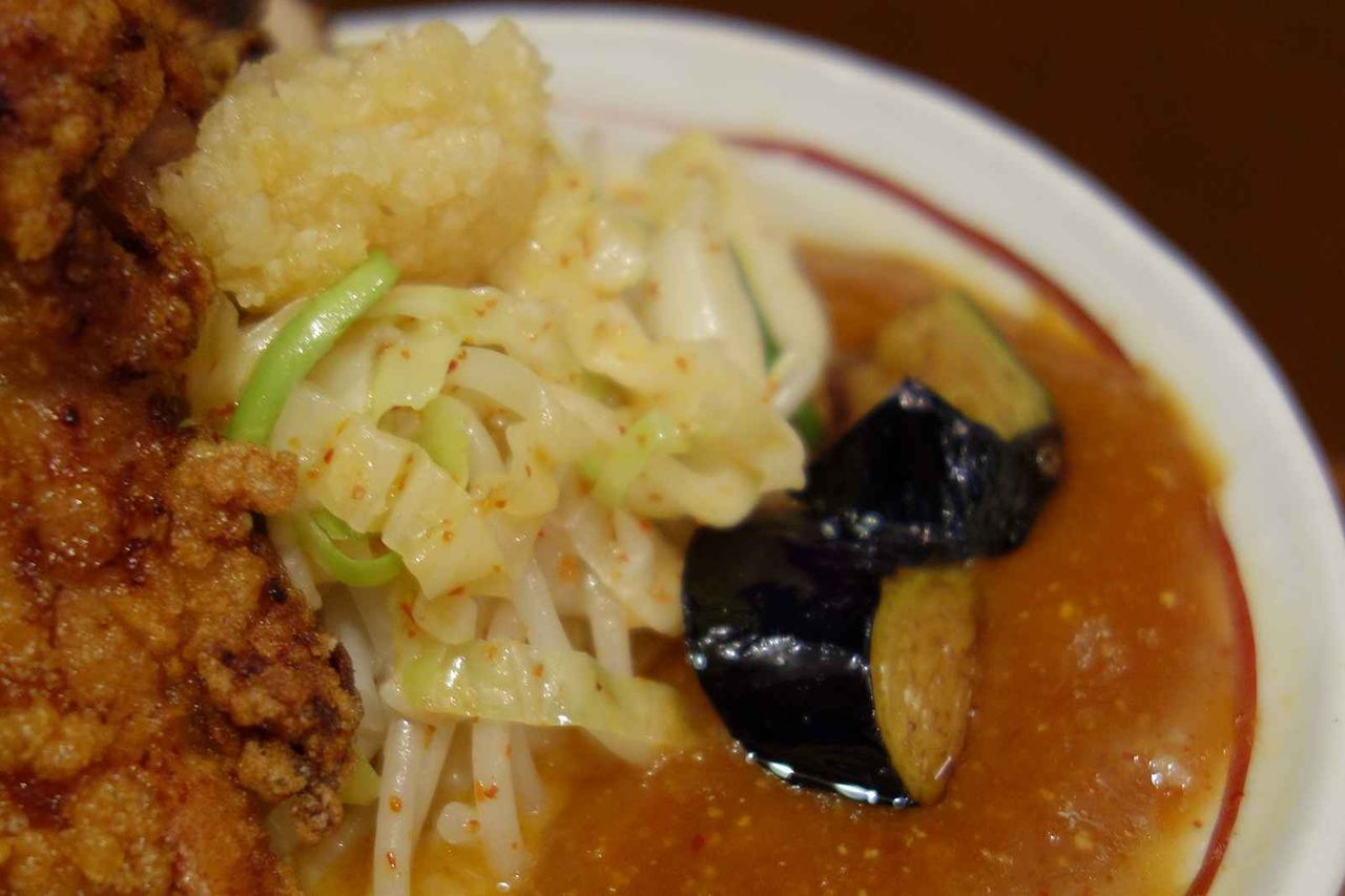 円やかな味噌スープと辛味のある餡が掛かったスープの味を味わった後は、麺を表に出し