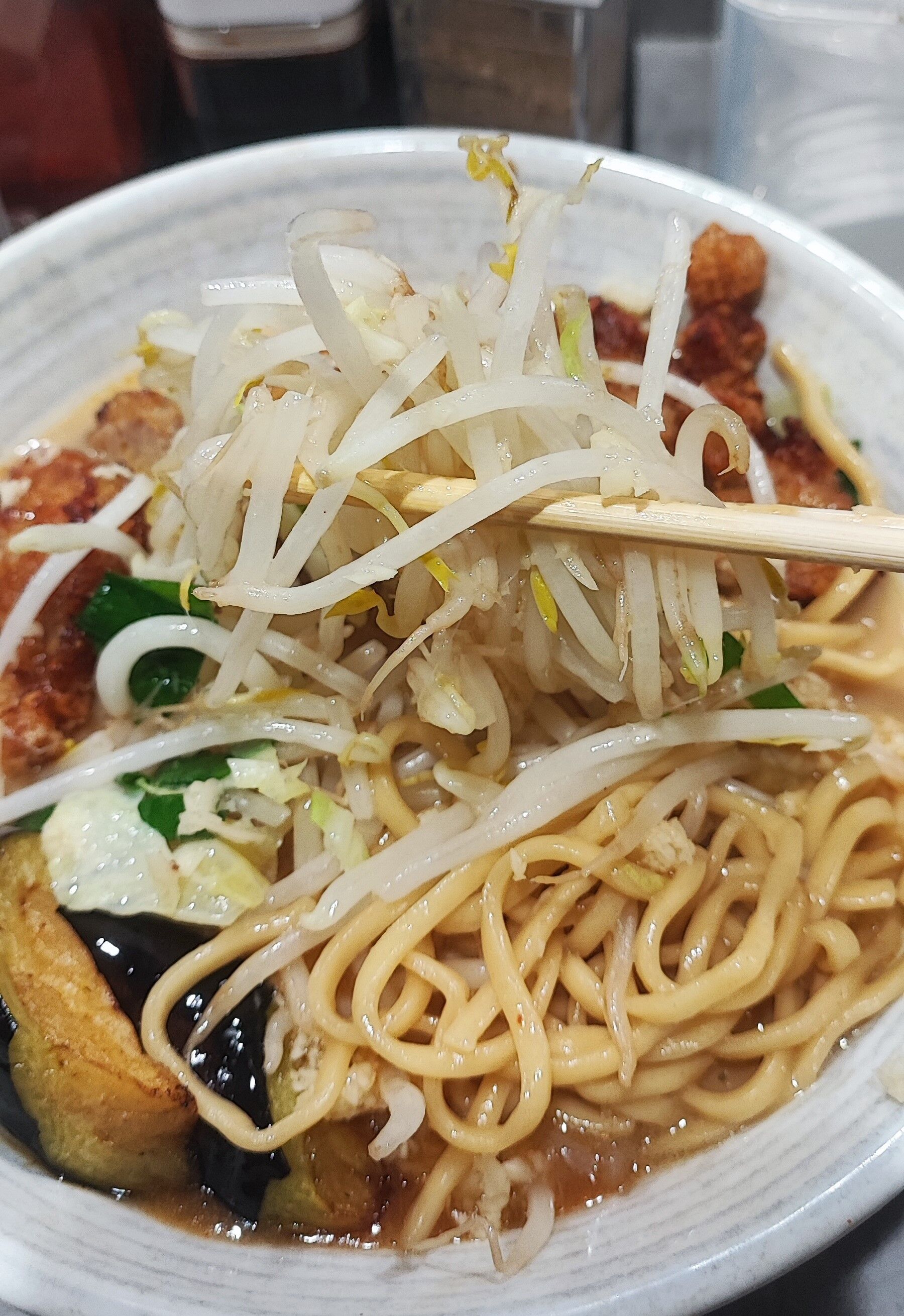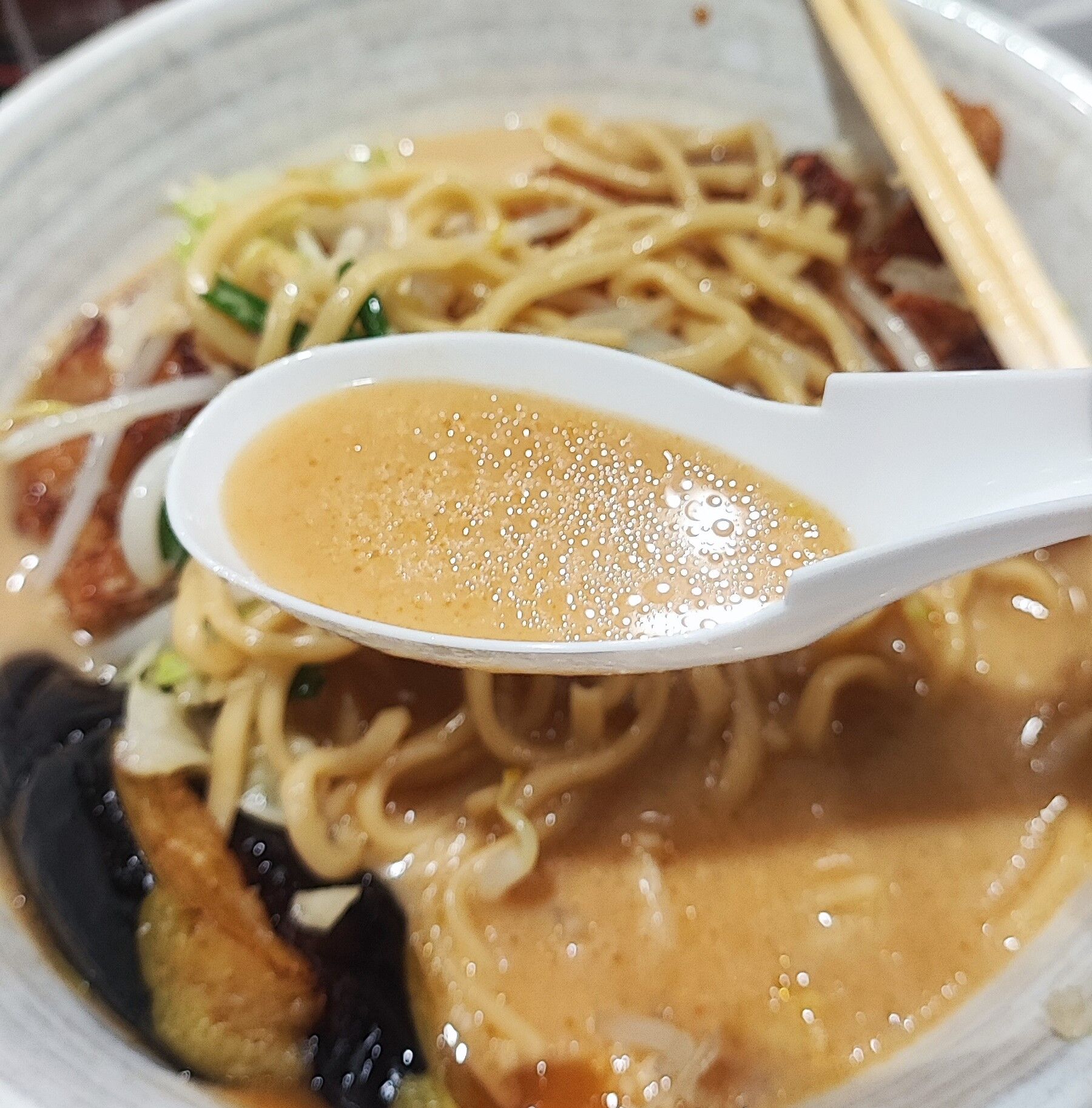 見た目は脂ギッシュな感がありますが、スープは脂っこさとは無縁で出汁の旨味と絶妙な辛味が絡んでウマウマ!