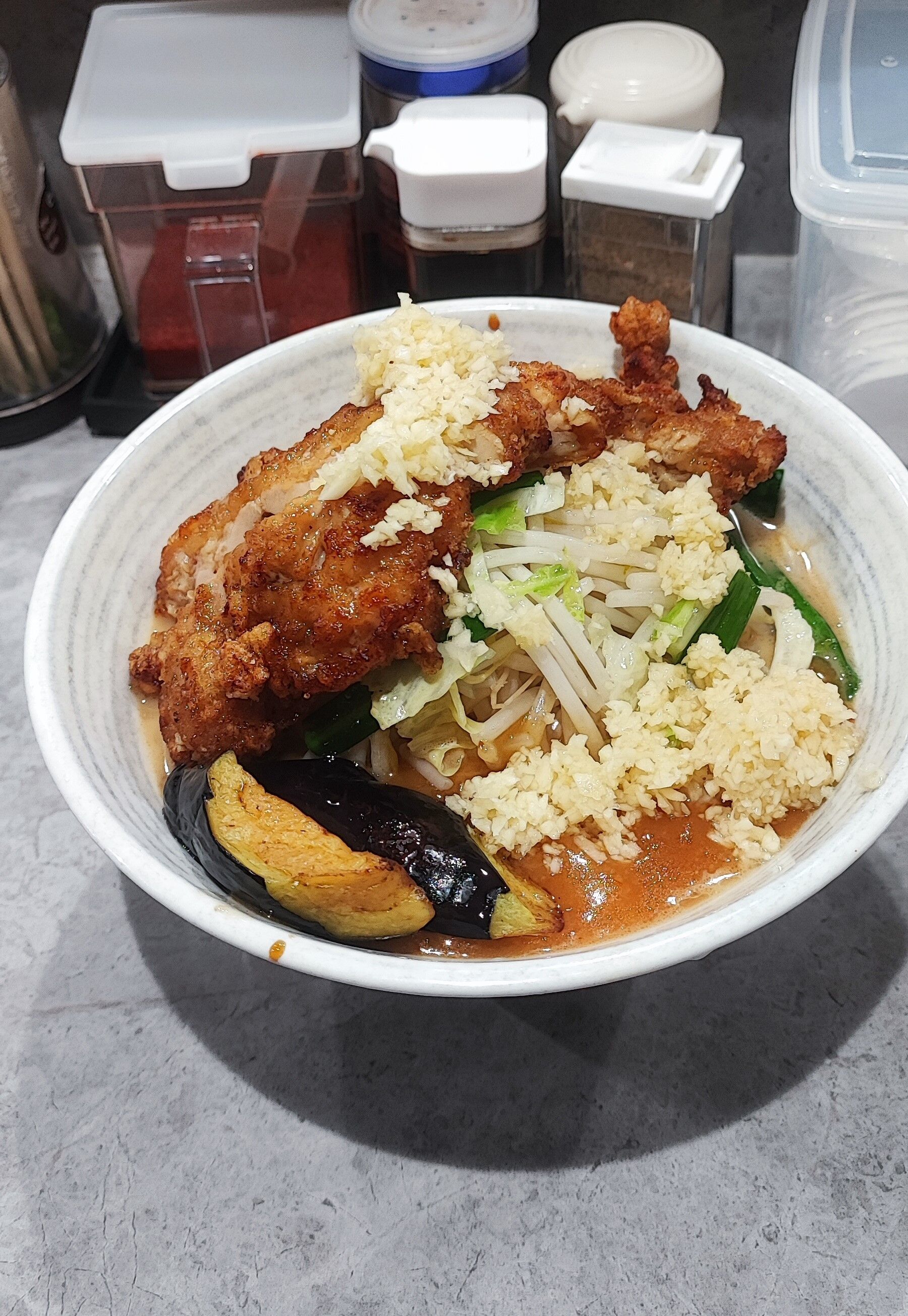 今回は野菜少なめ、にんにくマシで「ピリ辛あんかけDX」1200円をオーダー。
