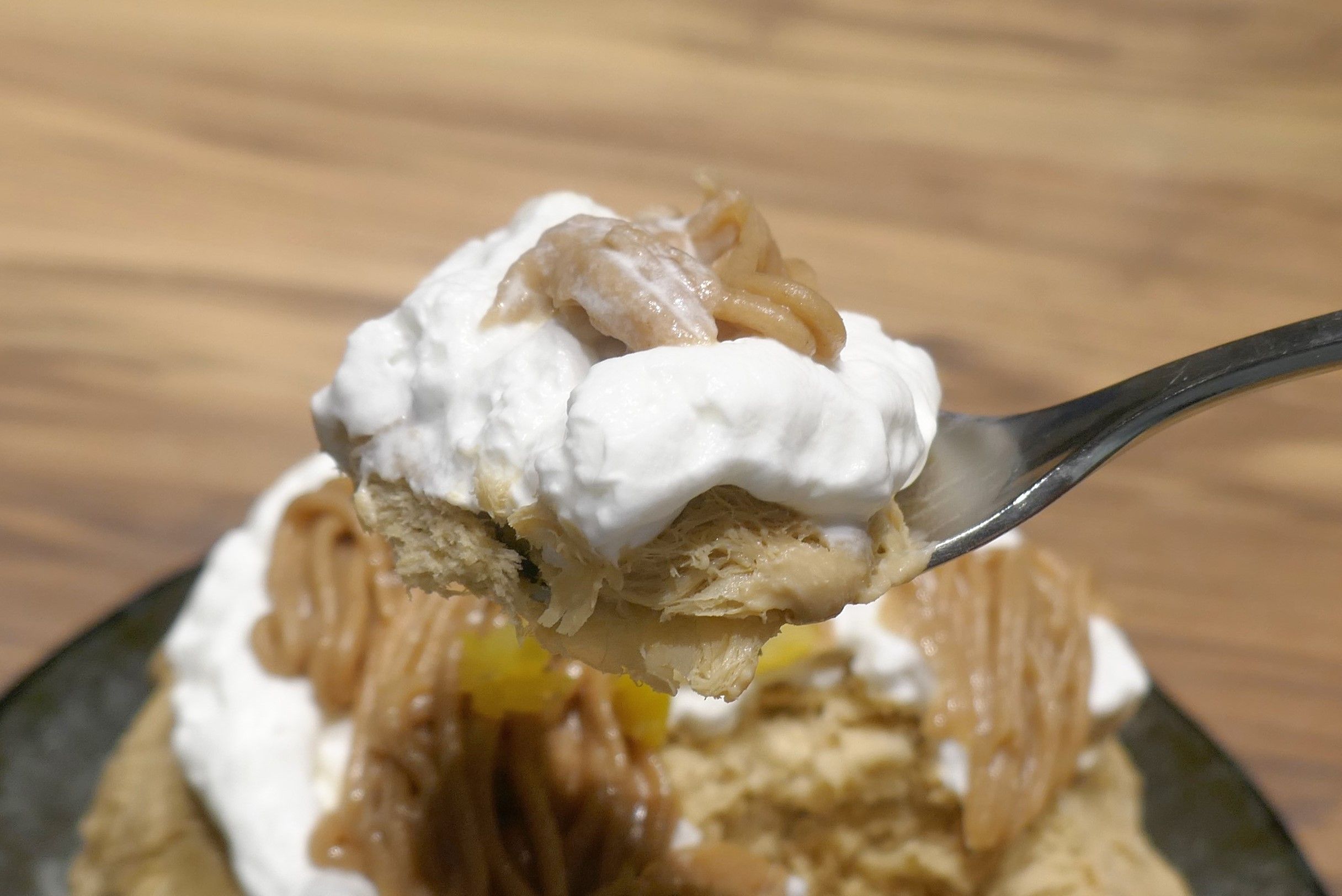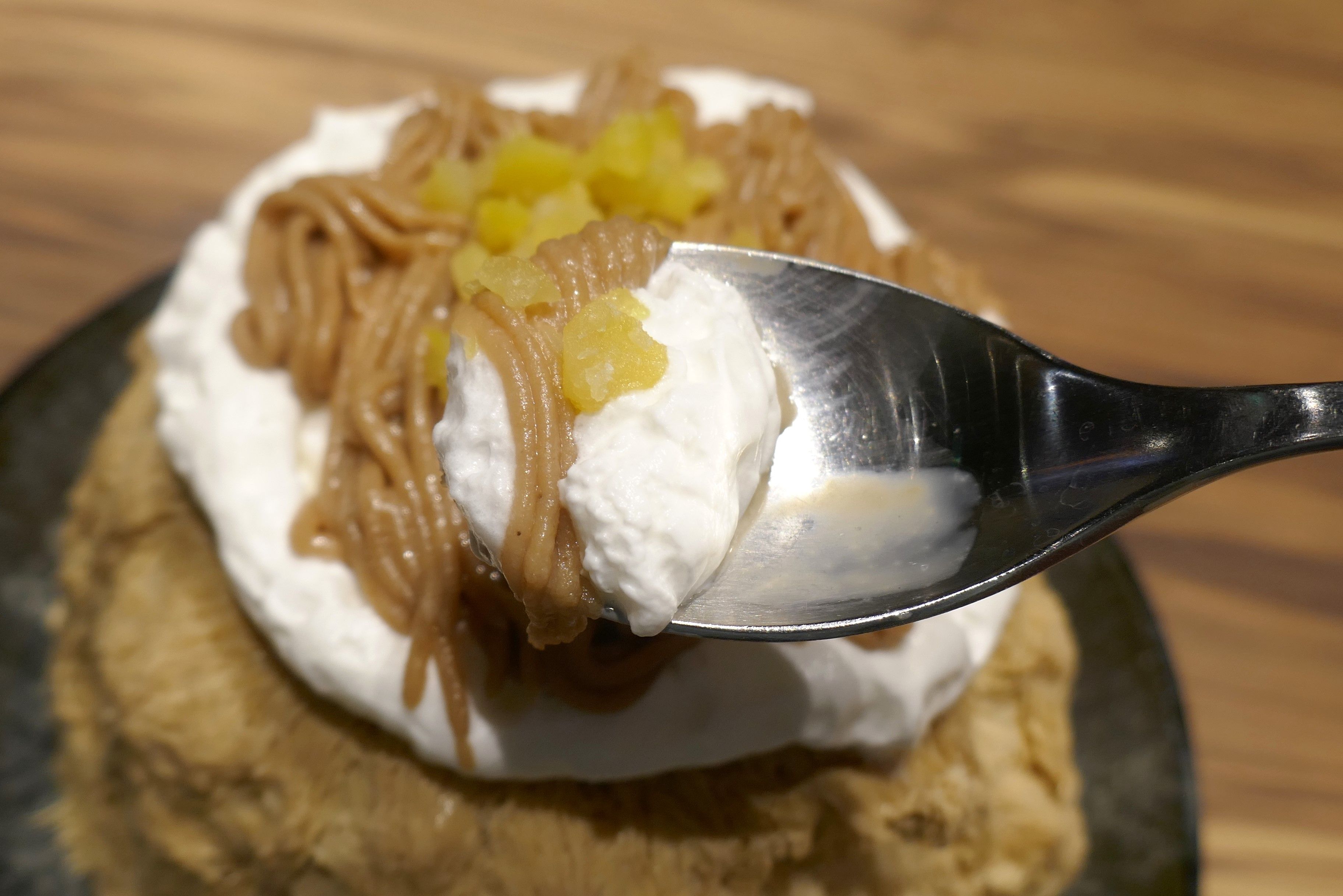 上には甘く煮た栗、濃厚な栗の風味とホクホク感がグッドな栗ペースト、濃厚な生クリームがたっぷり!