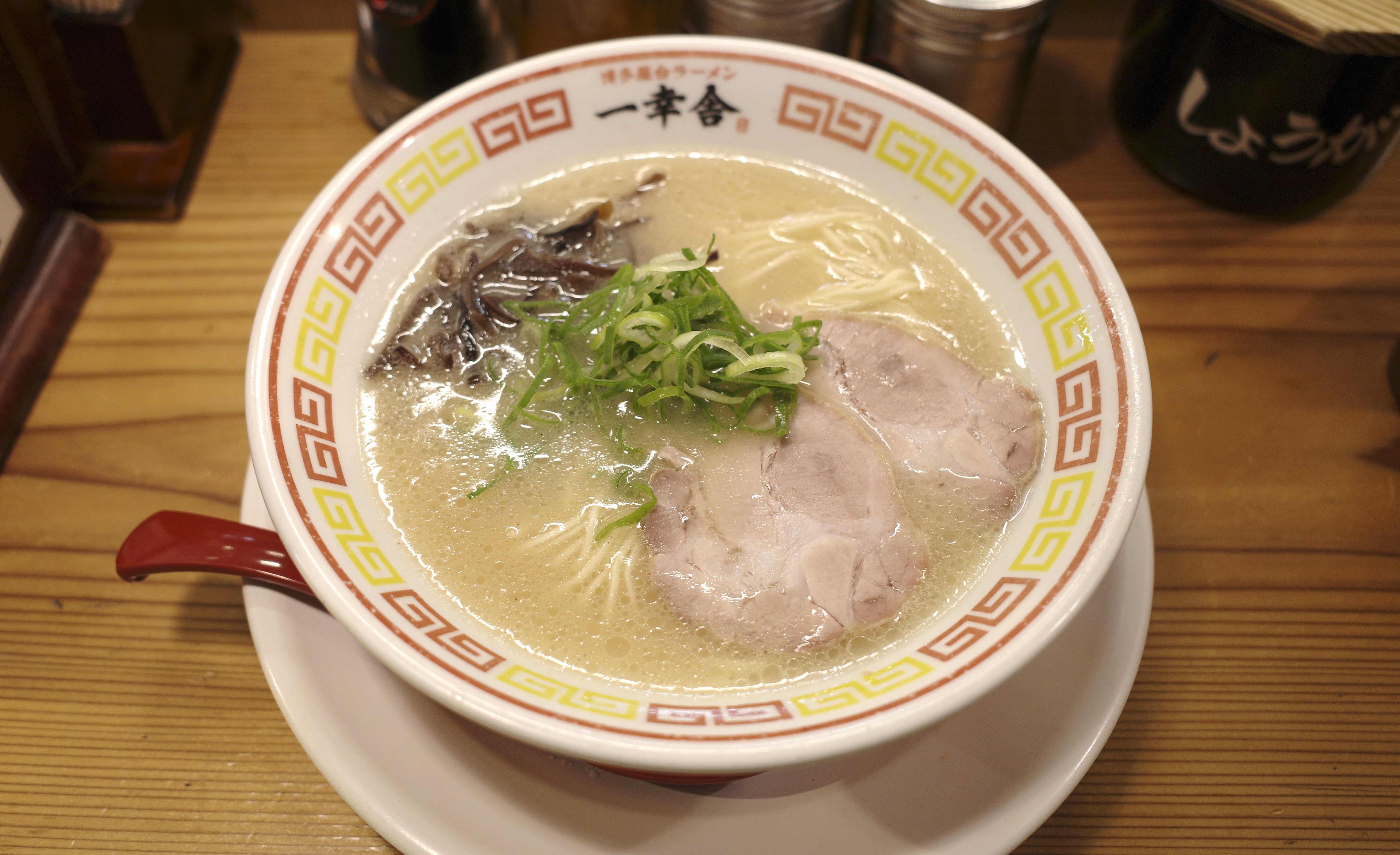 たまに行くならこんな店 博多駅近くの「博多屋台ラーメン一幸舎 博多一番街店」で、麺硬め、旨味豊かながらも後味は軽やかな豚骨スープで楽しむ「とんこつラーメン」780円を食す!