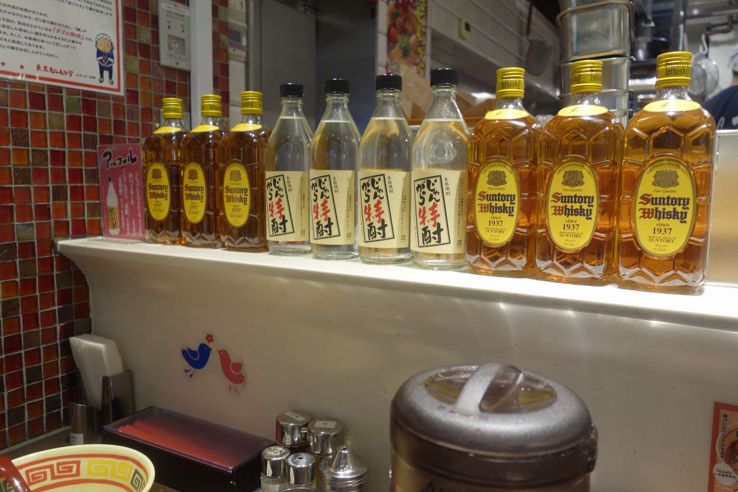 サントリー角瓶とじゃんがらオリジナル焼酎を見ながら待っていると