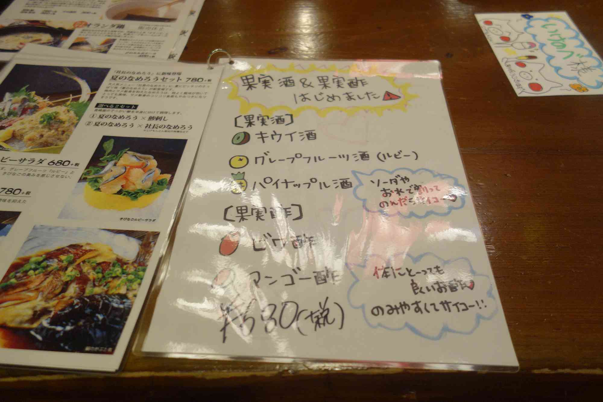 果実酒&果実酢メニューで別紙メニューは以上です。