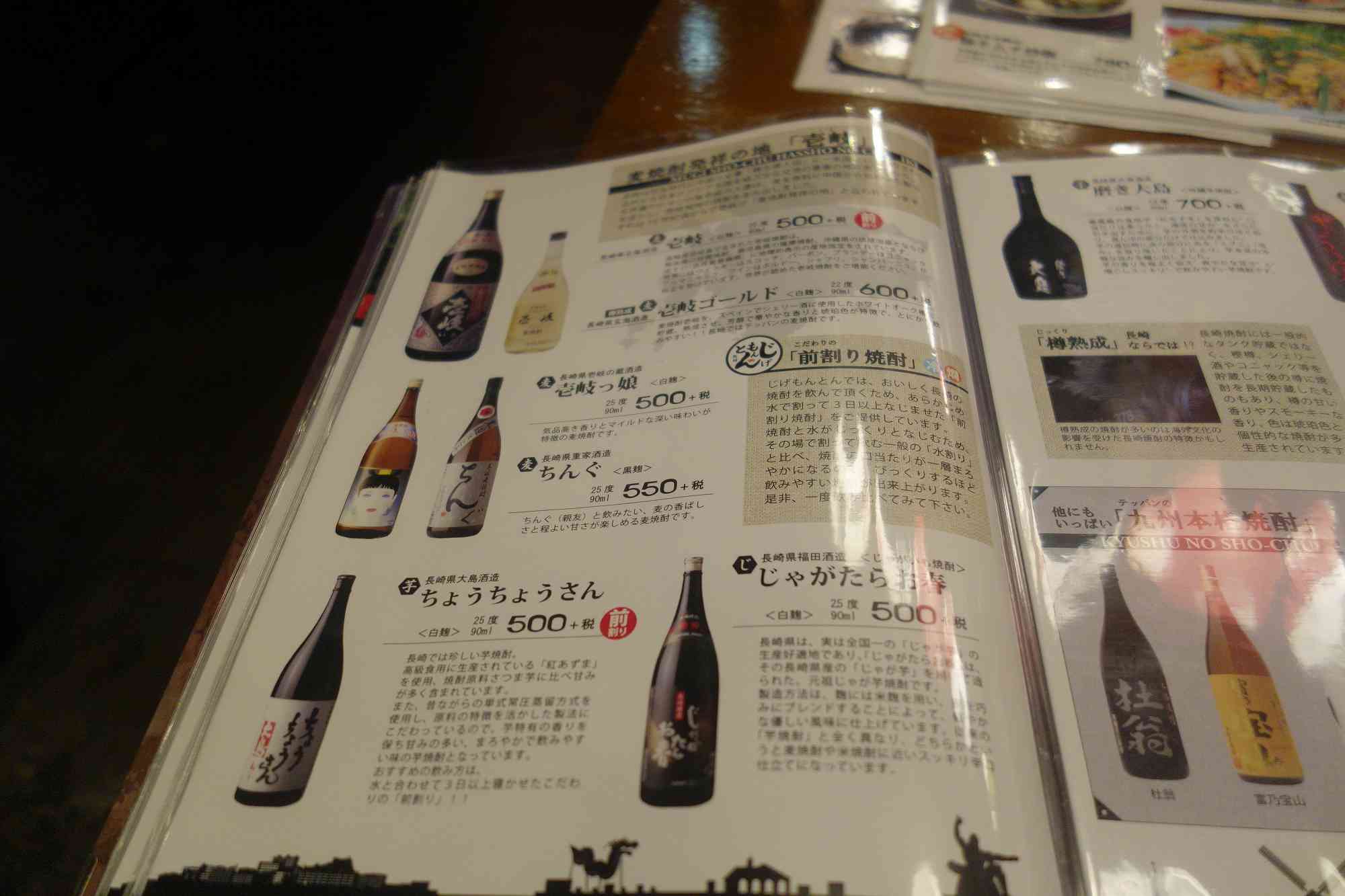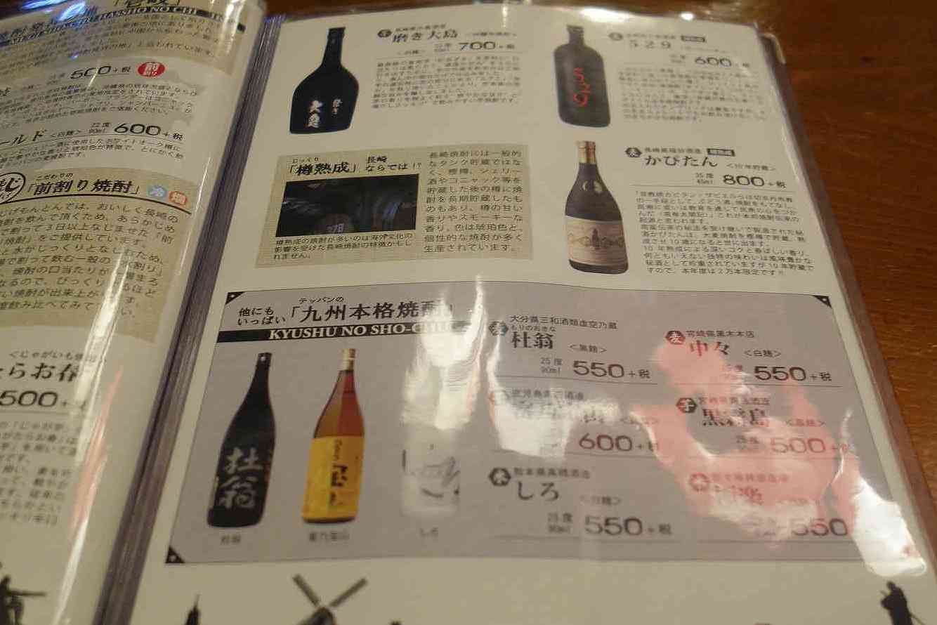 続いては飲み物メニューへと続き、まずは九州らしい焼酎メニュー
