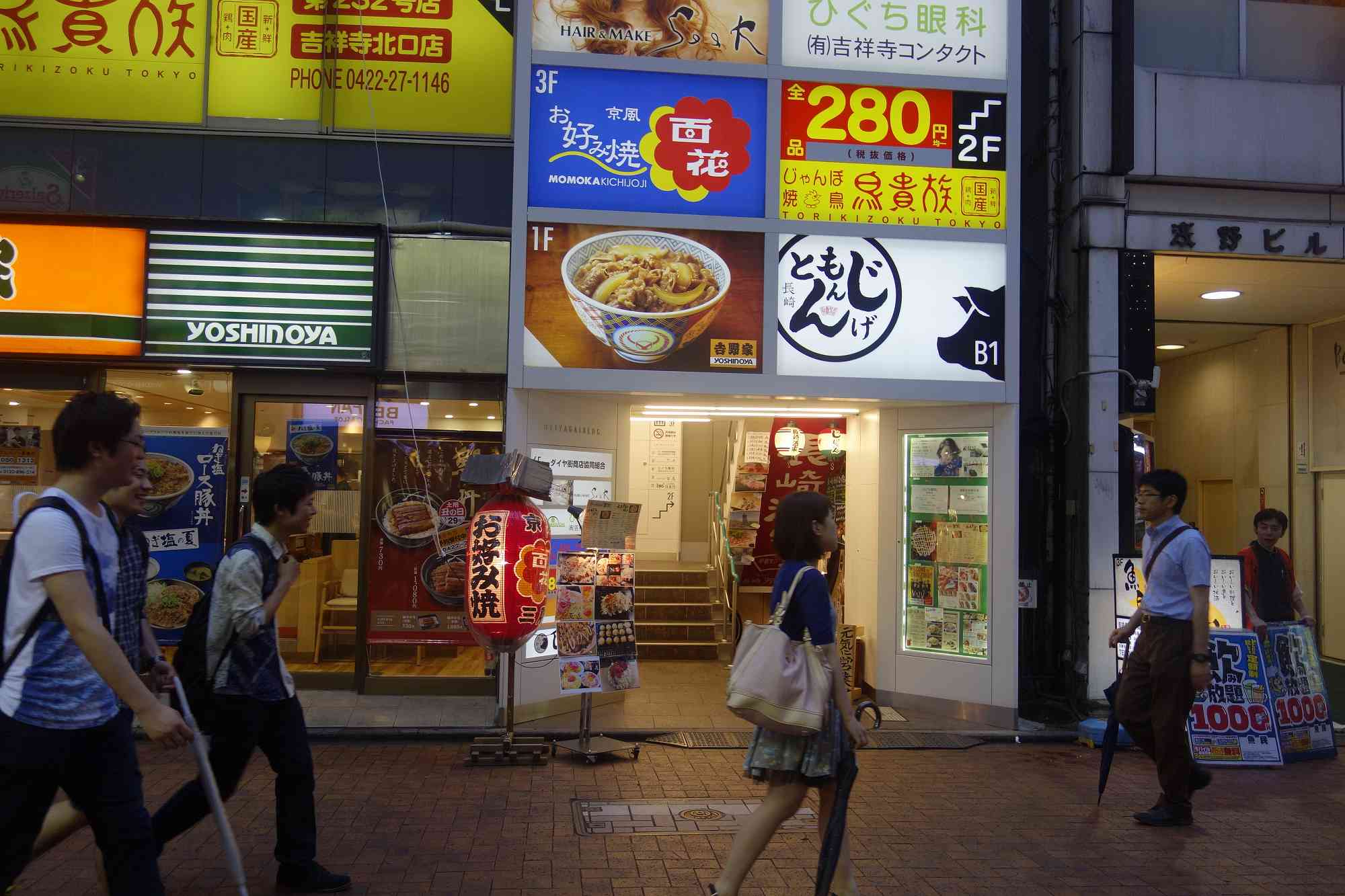 50mほどコピス吉祥寺方面へ歩いて右手を向くとじげんもんとんの文字があり