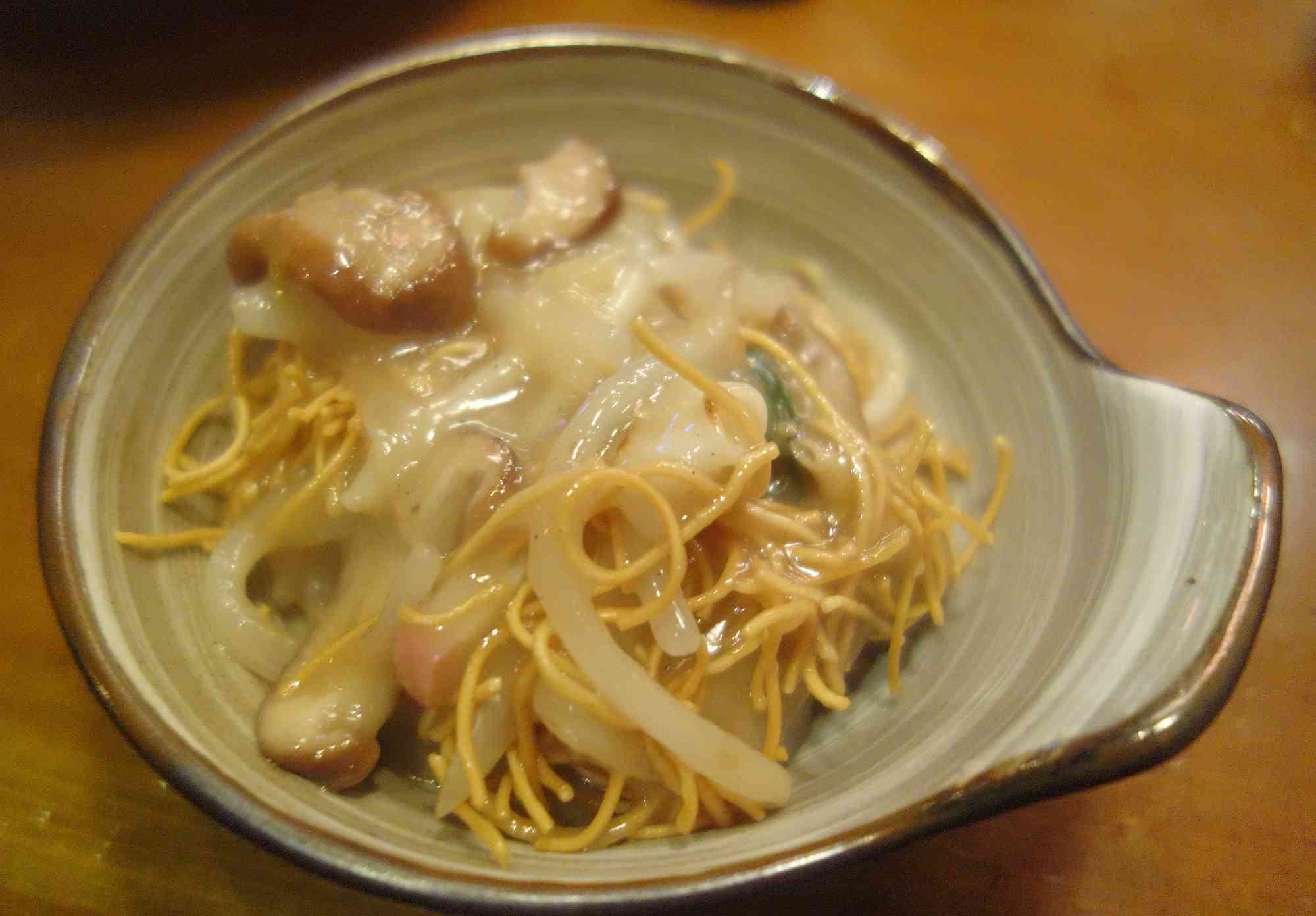 まずは小皿に皿うどんを盛りつけて