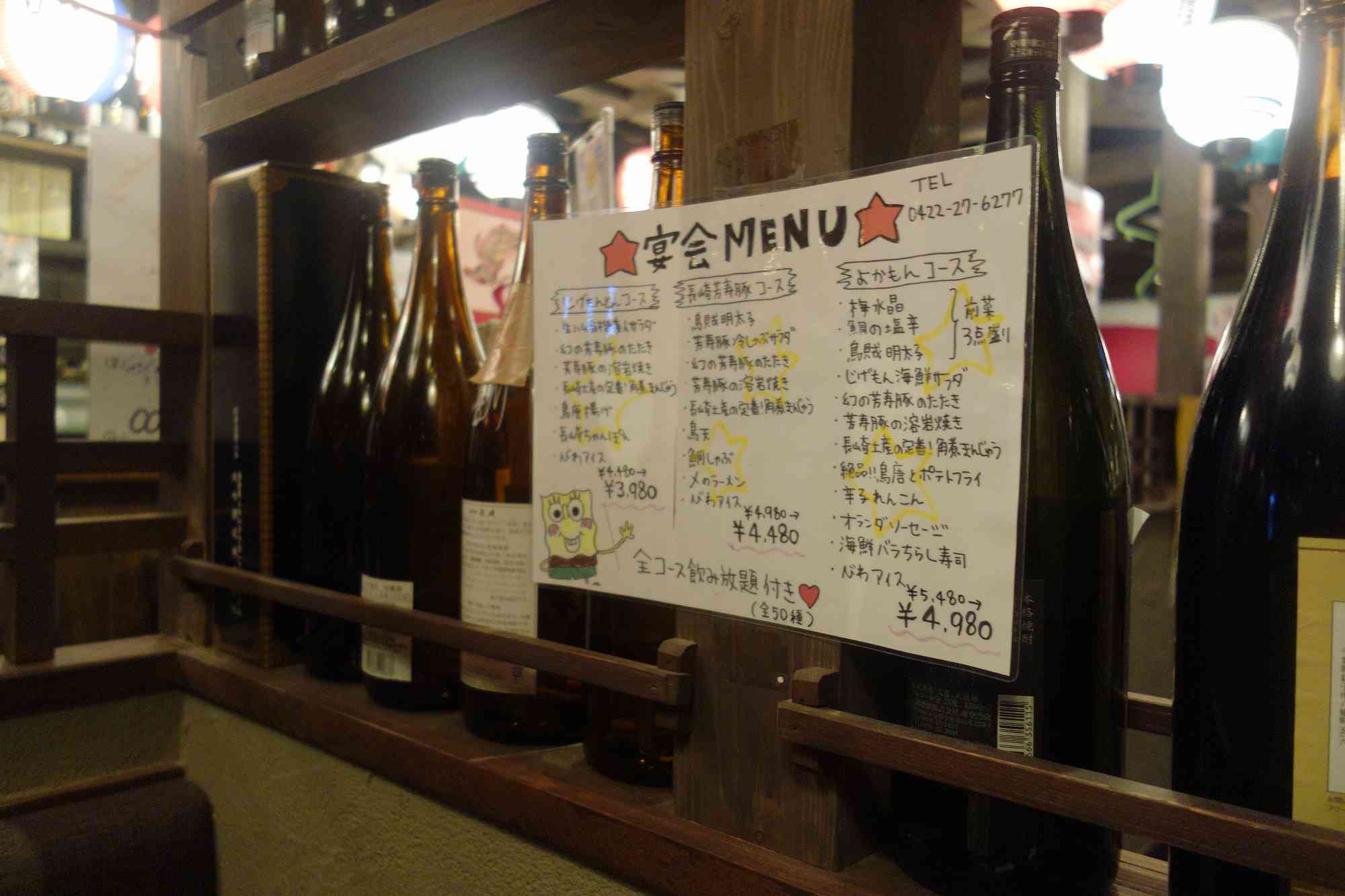 たまに行くならこんな店は、お店の名前に長崎言葉で地元の物という意味なじげもんと名前がついた、地域密着系居酒屋なじげもんとん吉祥寺店です。