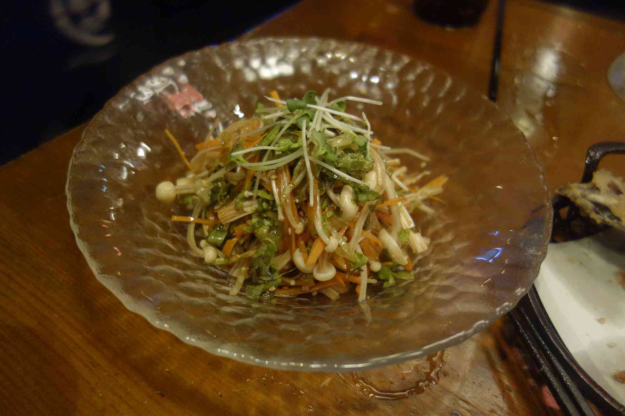 肉々しい料理が続いた後は、生えのきと有機野菜の桶盛り850円を注文し