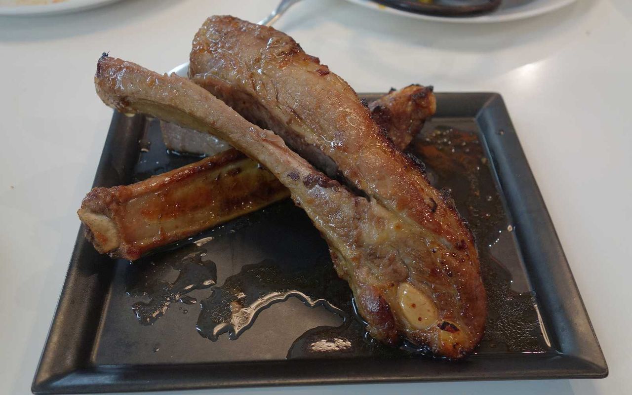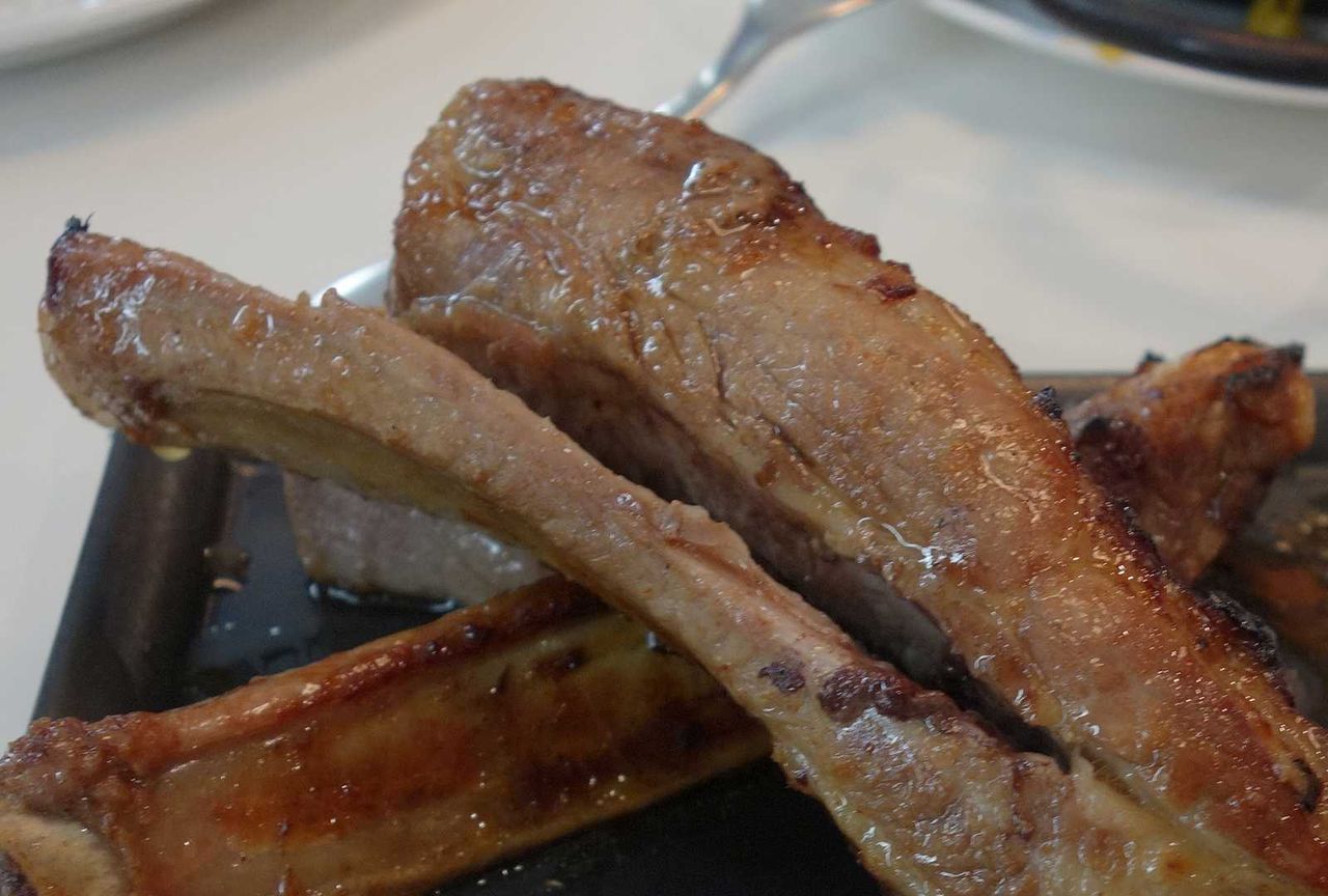 スペアリブのバーベキューは熱々で肉々しい味わいで