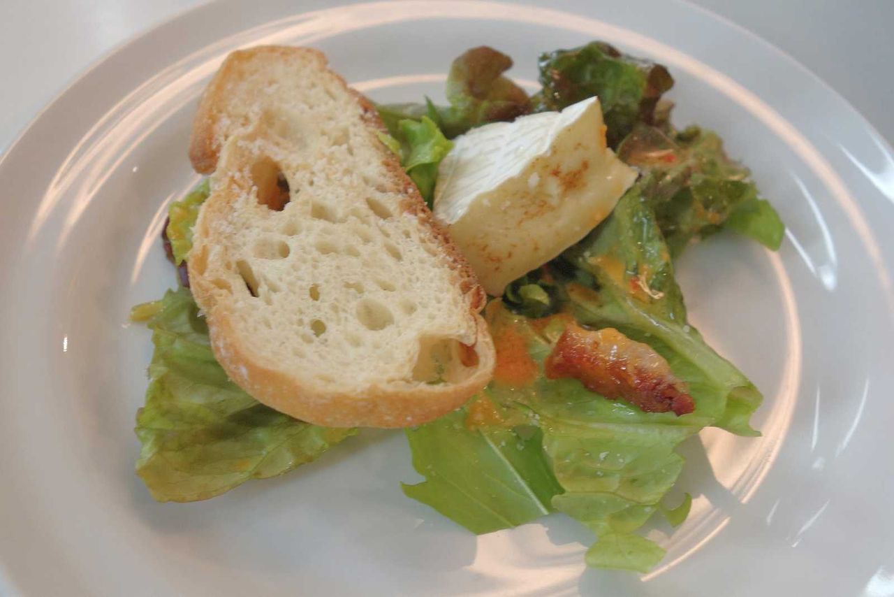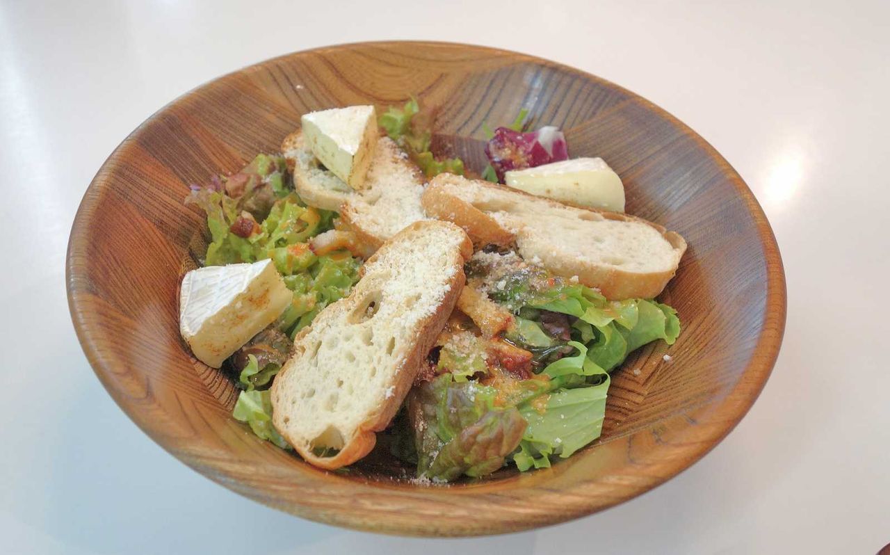 カマンベールサラダを頂いてみると、ドレッシングの中に潜んでいたベーコンは肉々しく