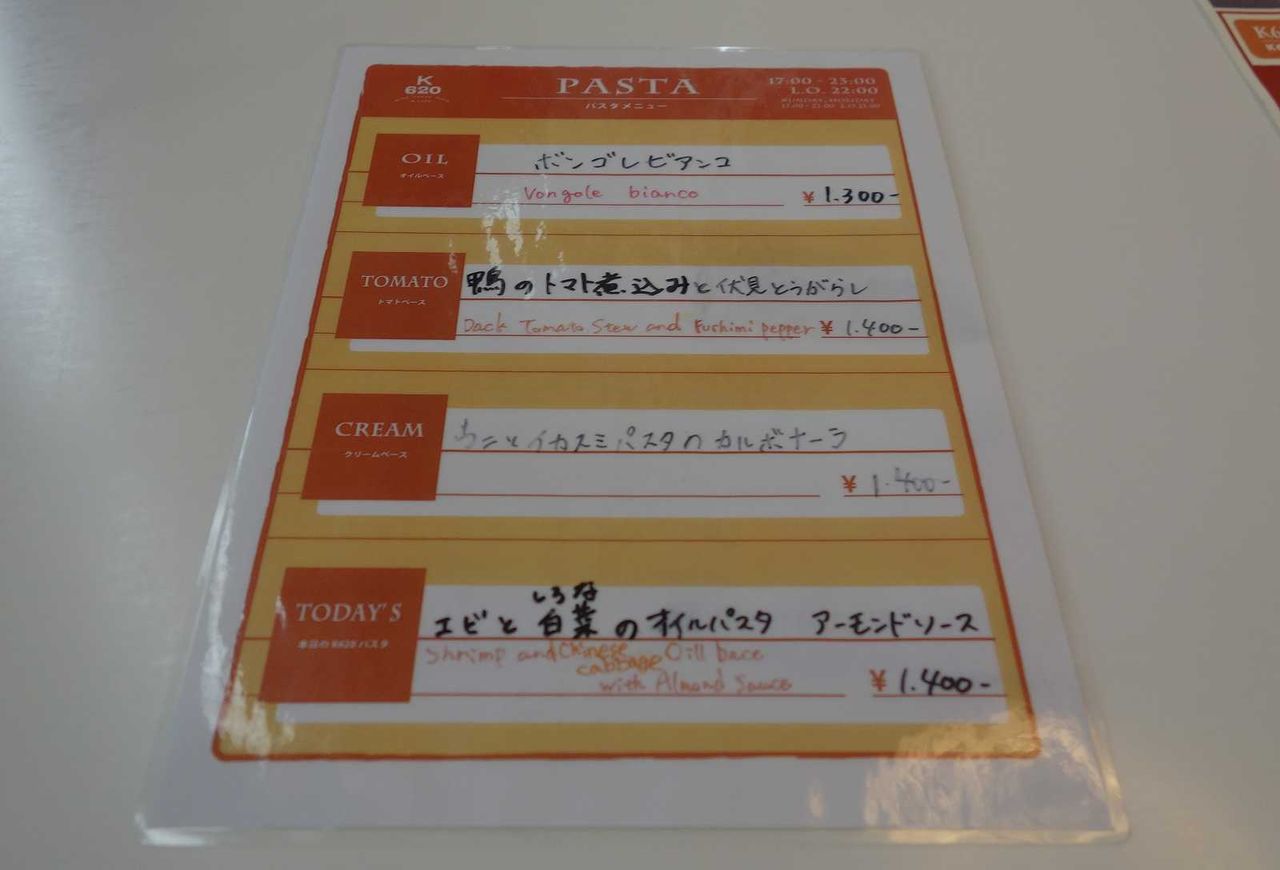 特にパスタとスペアリブのバーベキューが美味しく印象に残ったK620ですが