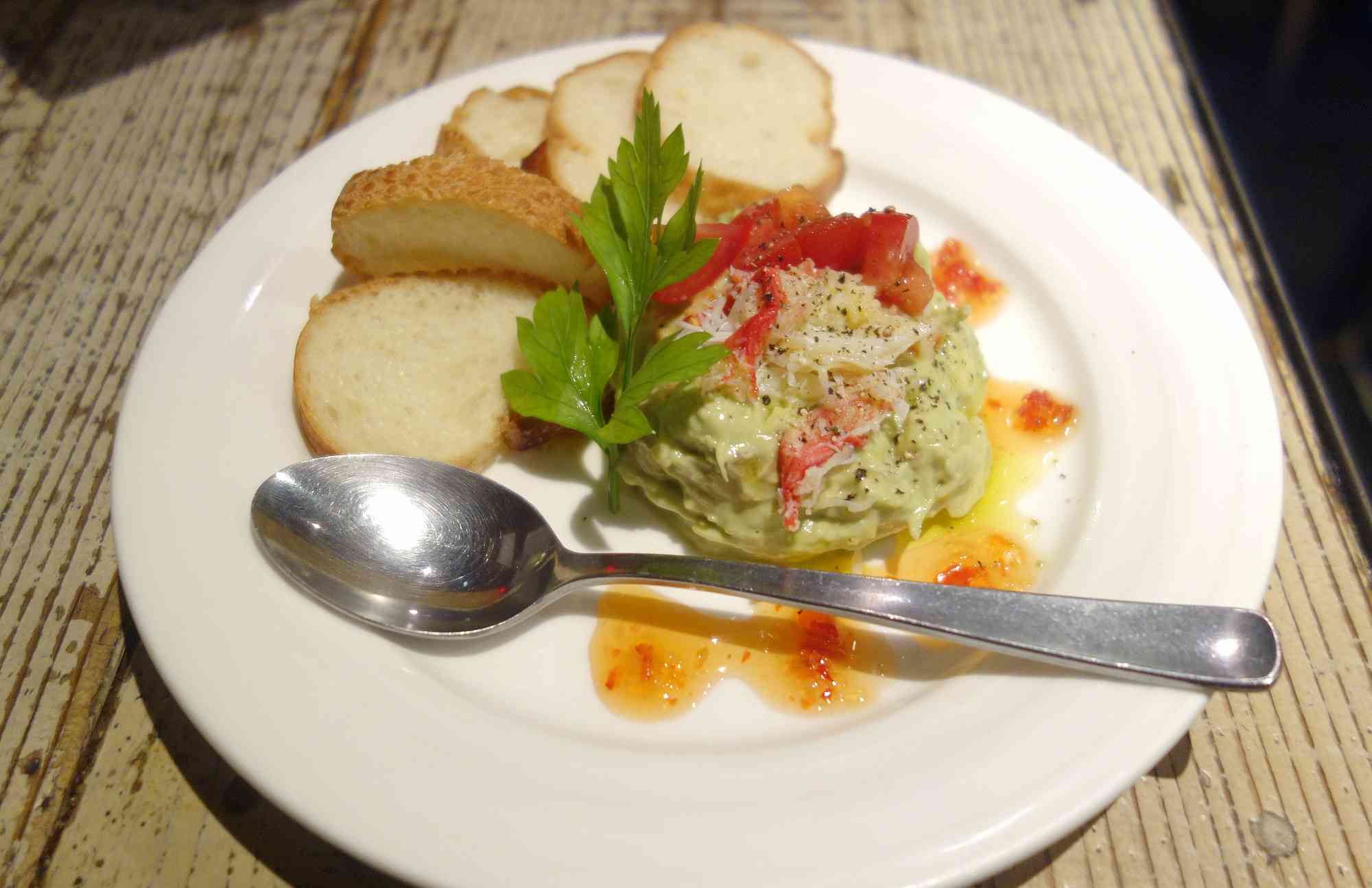 蟹の旨味とアボカドのトロリ感がバケットと合わさるとサクッと食らえて美味しく