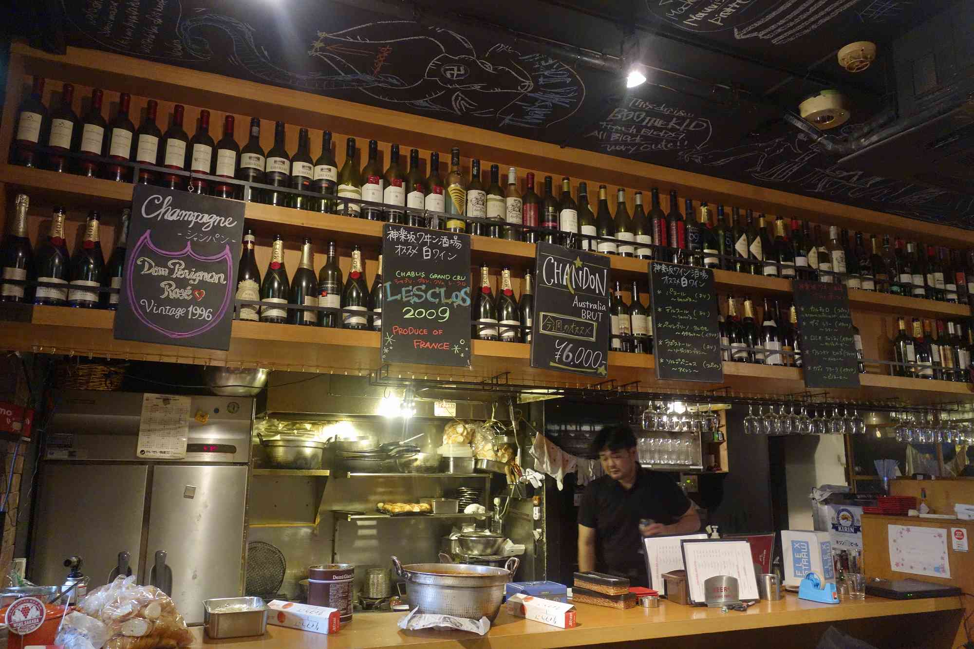 たまに行くならこんな店は、神楽坂上の毘沙門天の目の前にありワインとともに洋風料理を楽しめる「神楽坂ワヰン酒場」です。