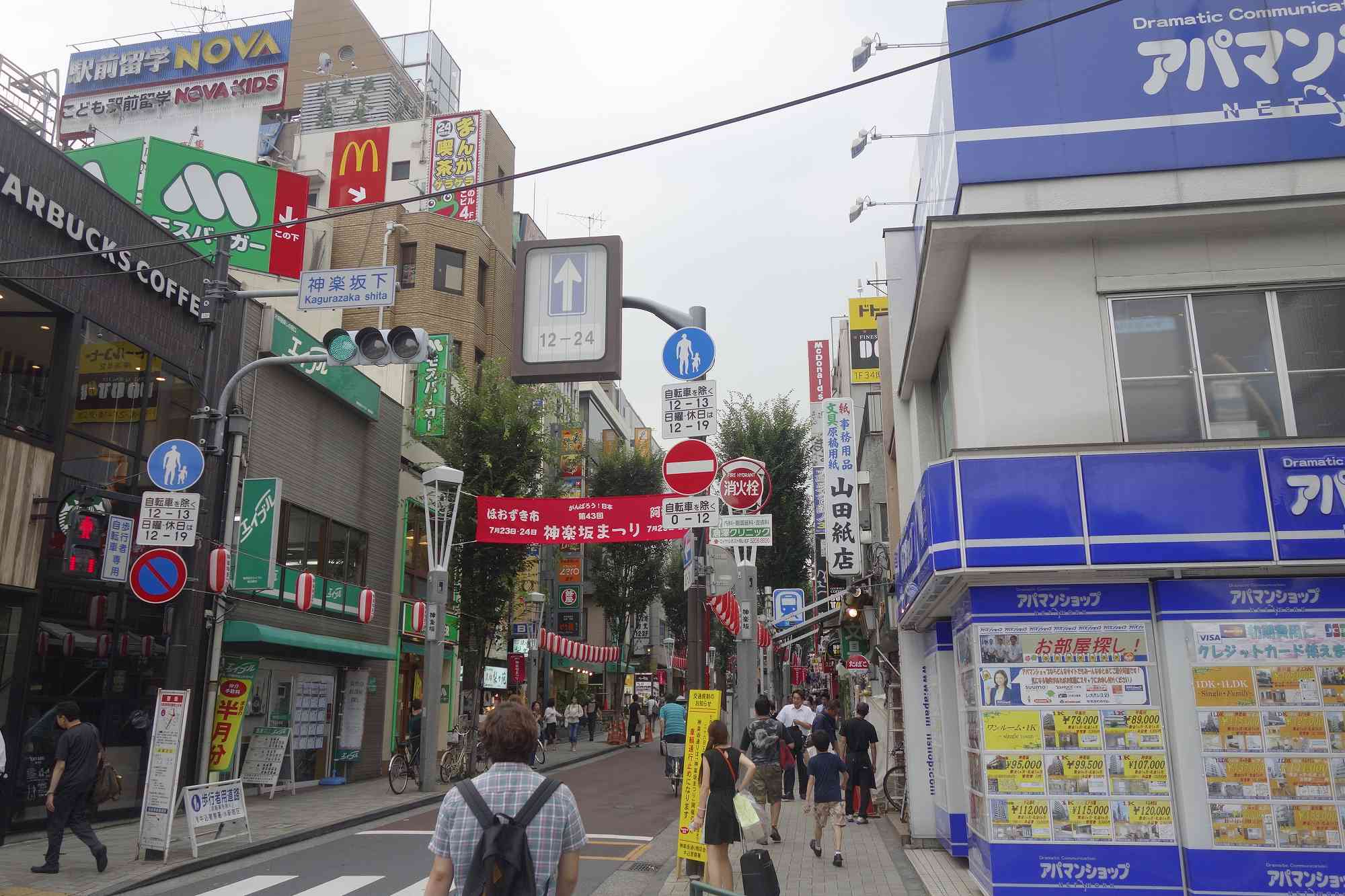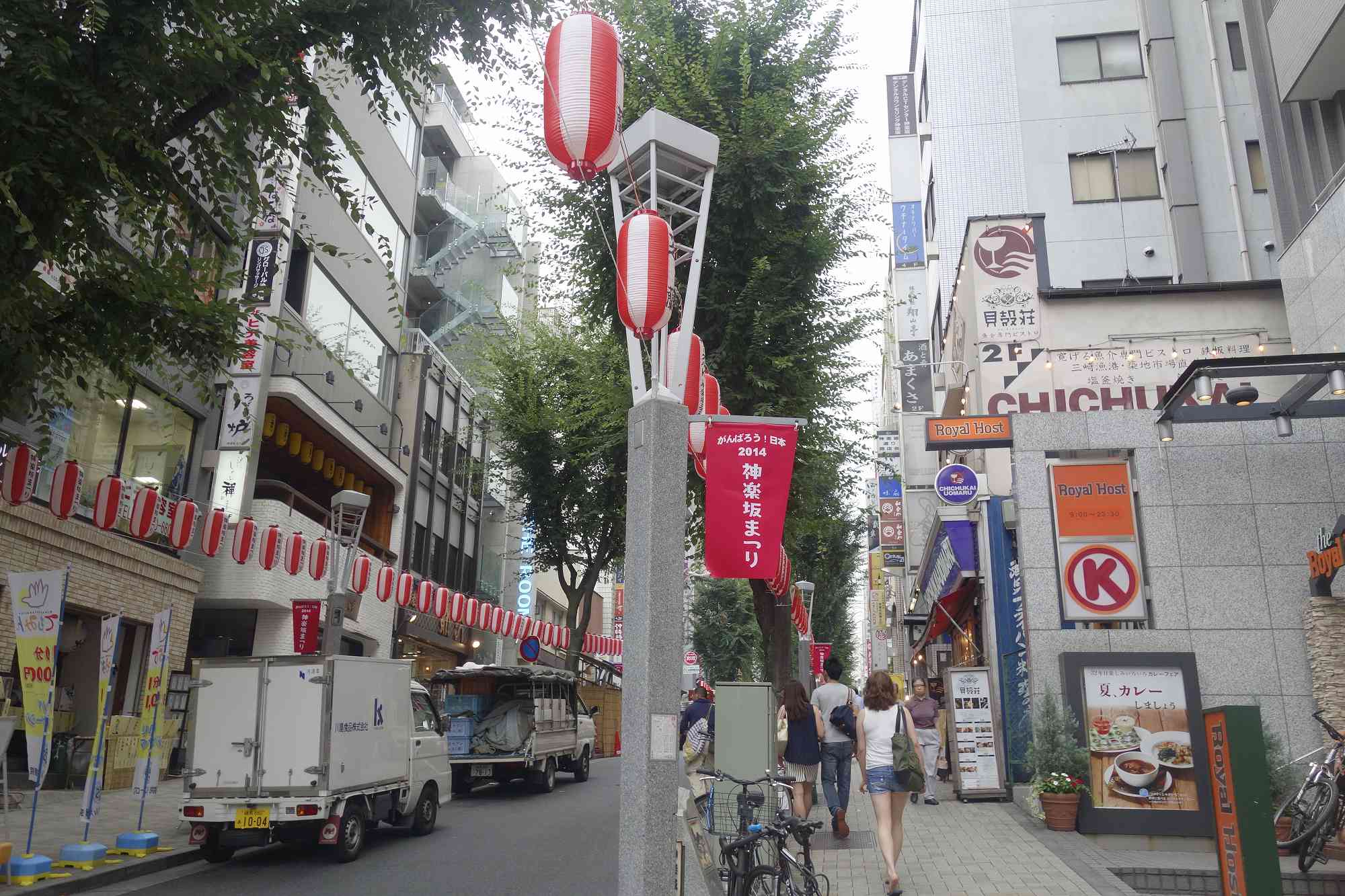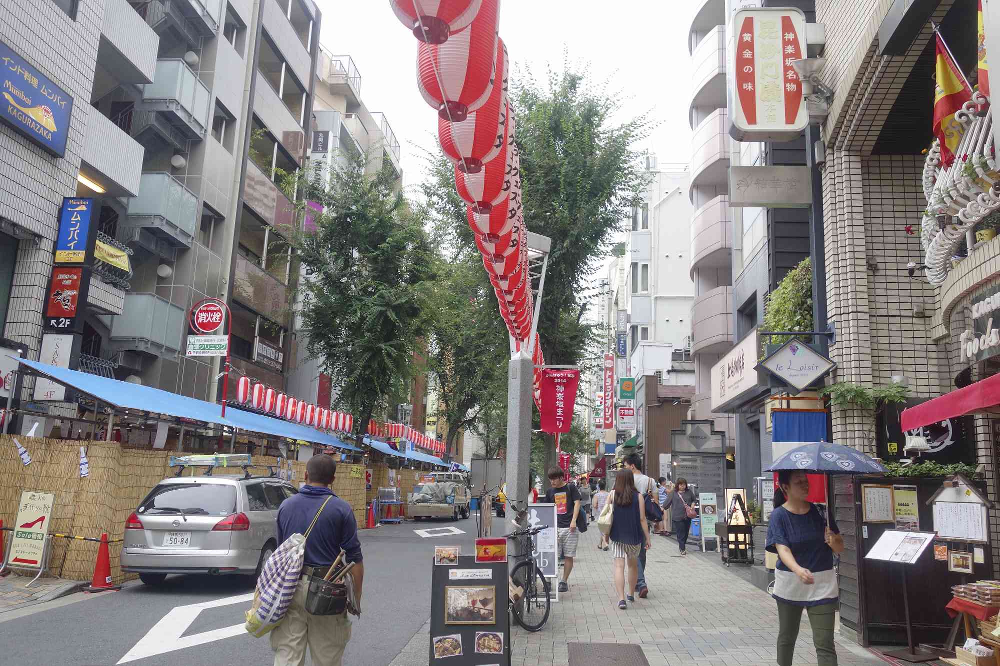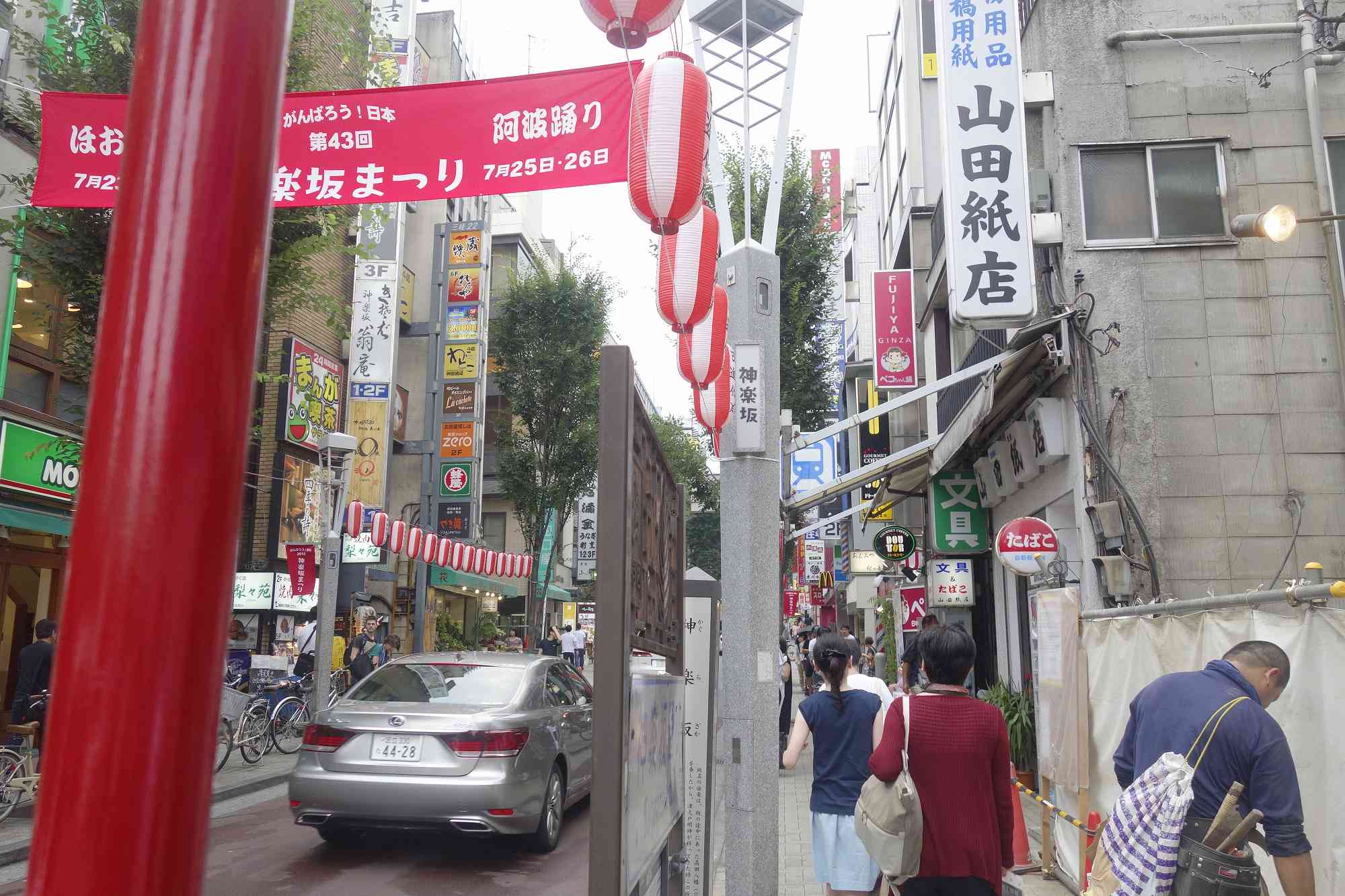 神楽坂は文字通り坂がちな通りを抜けて歩いて行くのですが