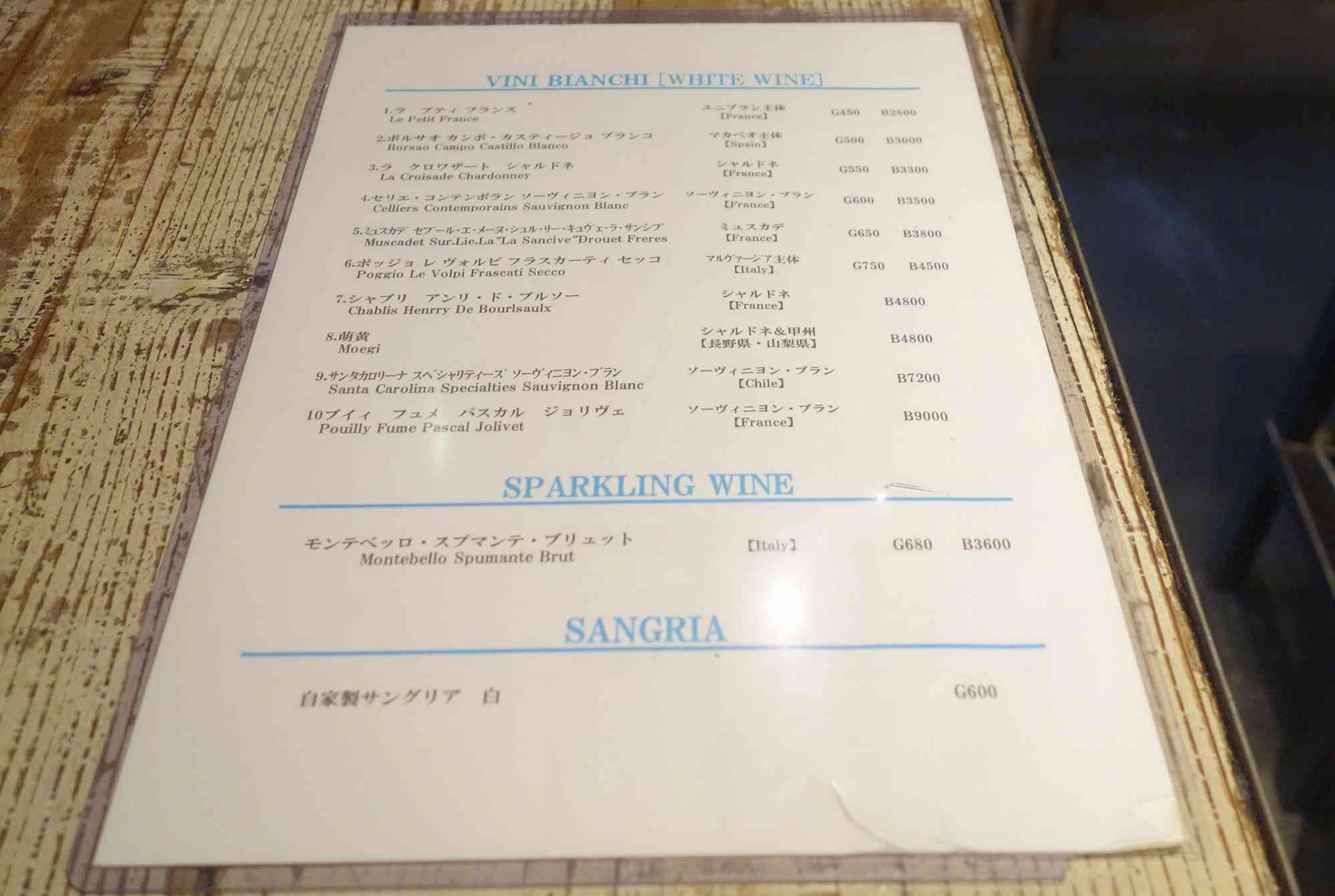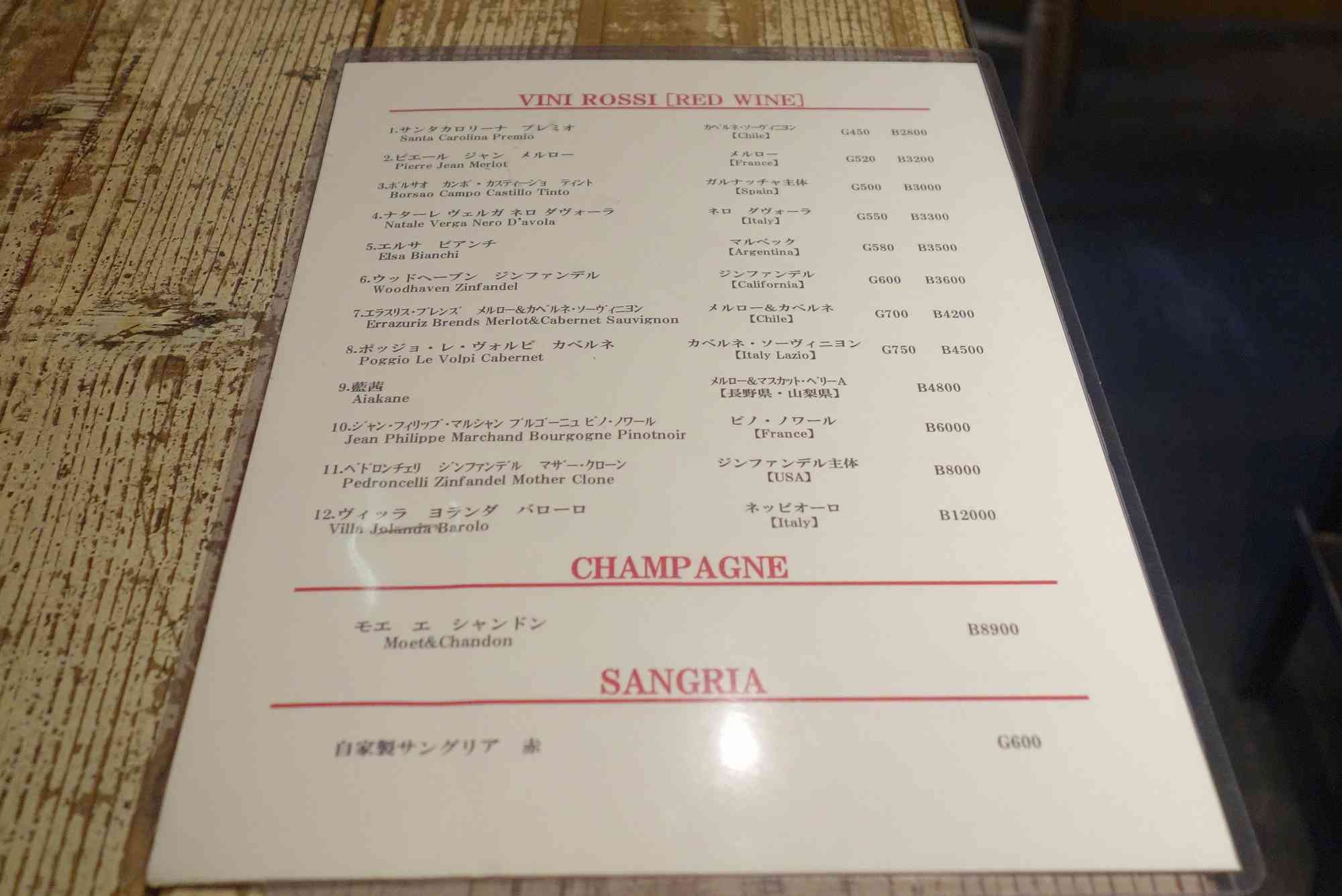 早速メニュー表を見て見ると、赤ワイン、シャンパン、サングリア赤