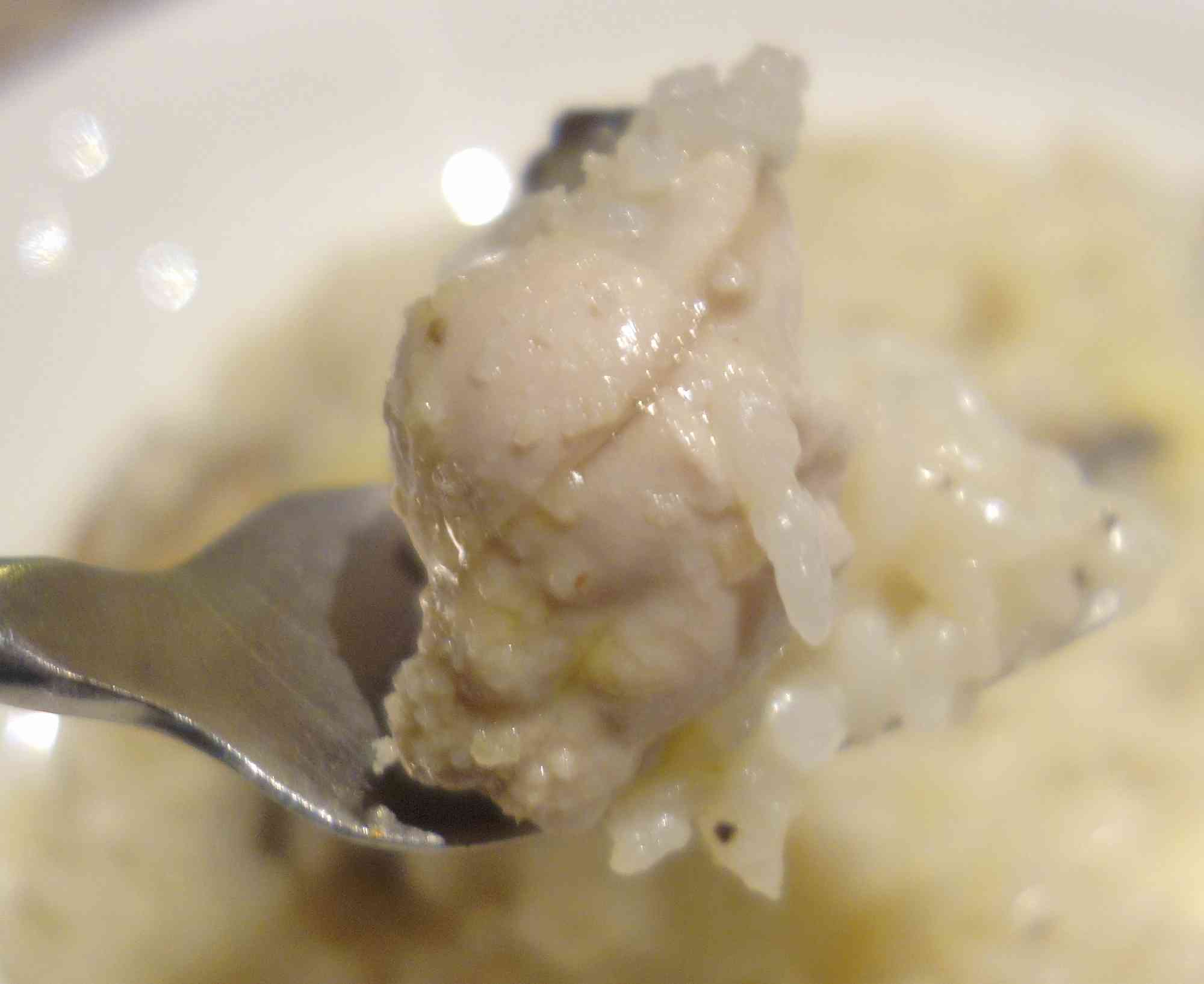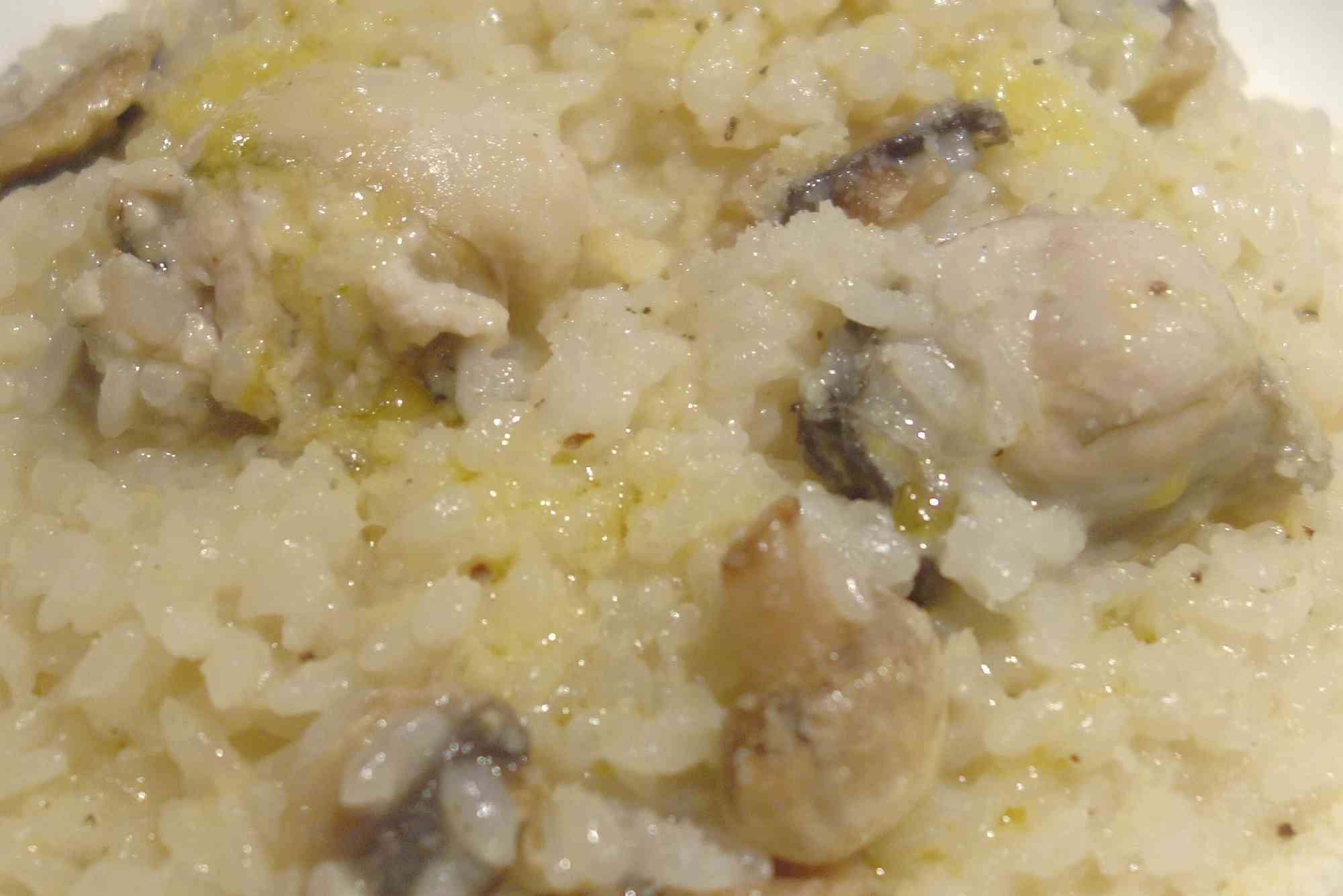 プリプリな牡蠣と共にリゾットをすくって食べてみると、牡蠣の美味しさがしっかりと感じられるリゾットで