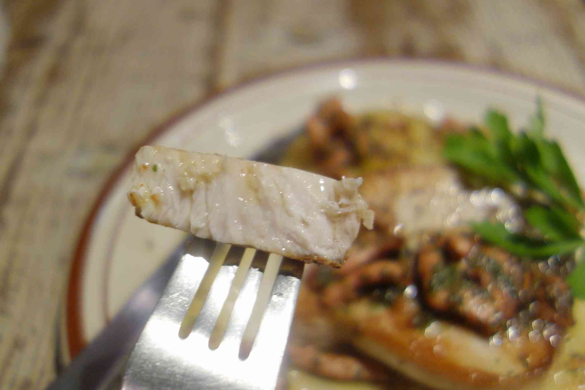 カジキマグロのソテー塩辛バターソースは遠目から見ても