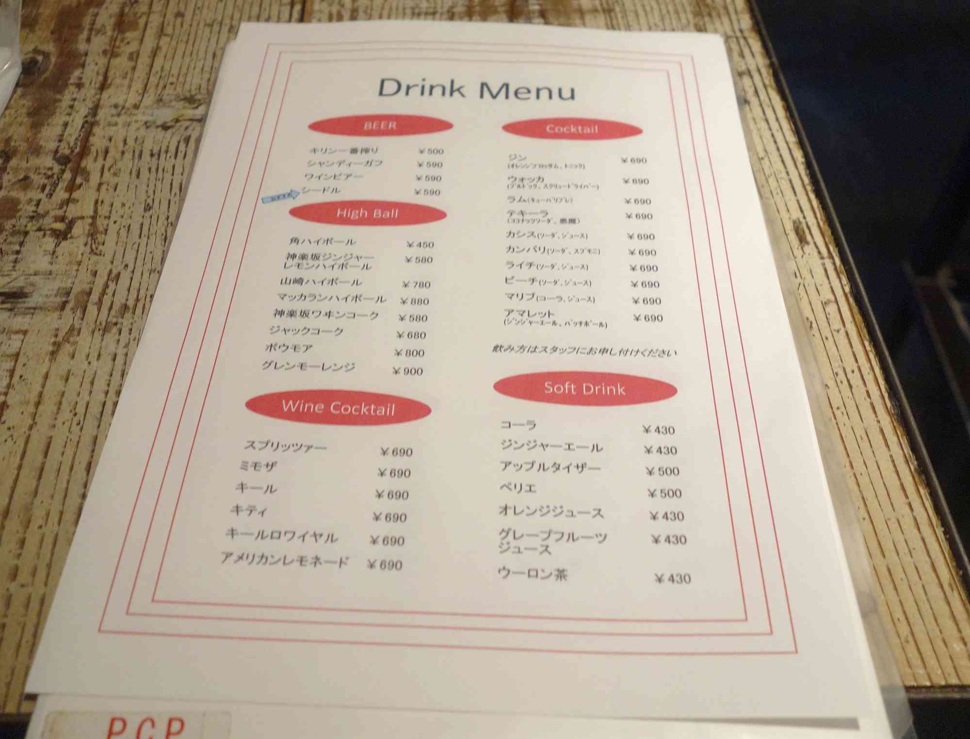 ビール、ハイボール、ワインカクテル、カクテル、ソフトドリンクで別紙メニューは以上で
