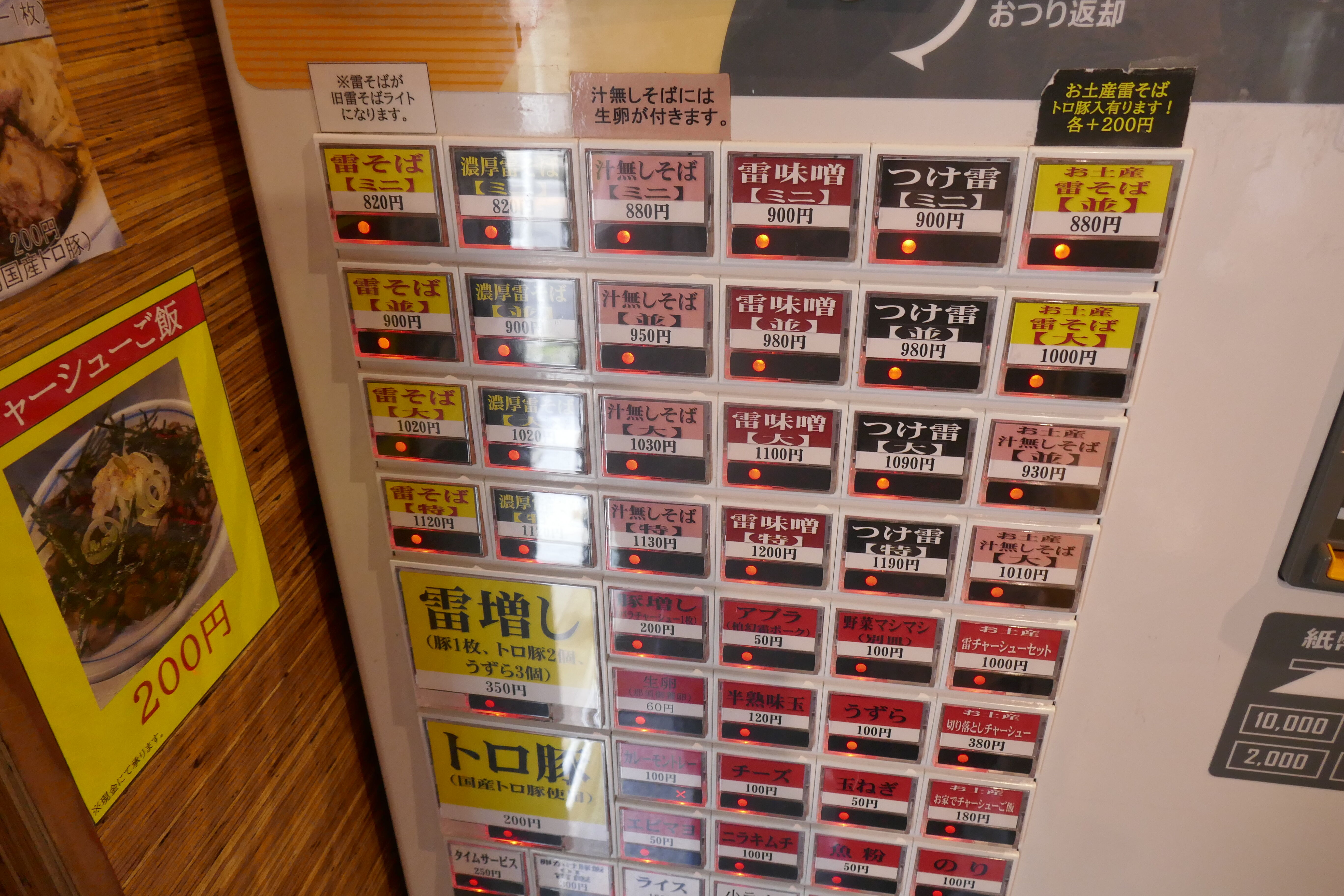 メニューは色々ありますが、今回は「濃厚雷そば 並盛」900円を食べてみることに。