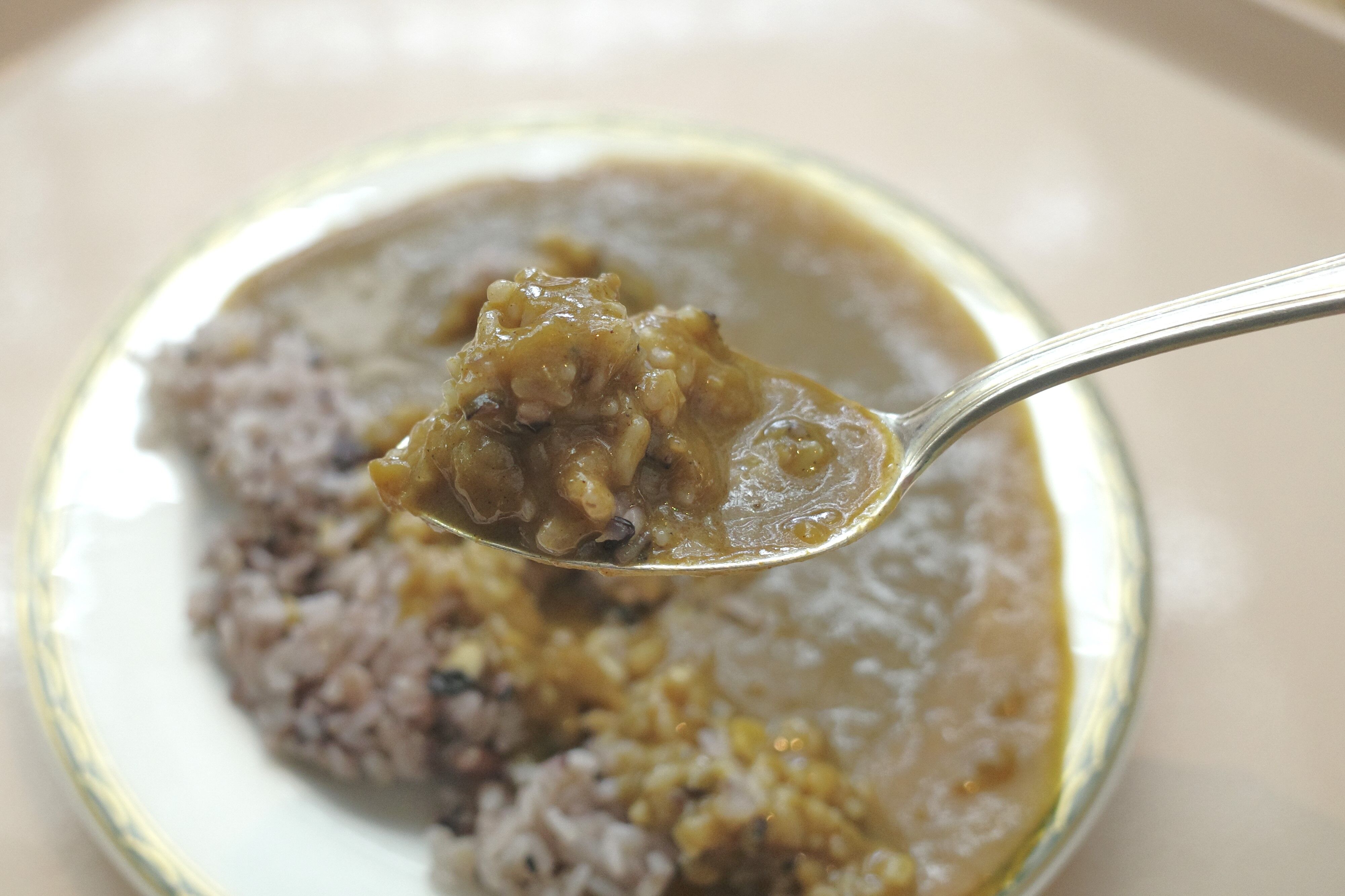カレールーはスパイシーかつ香ばしさとハリ強めな雑穀米で受け止めてウマー!